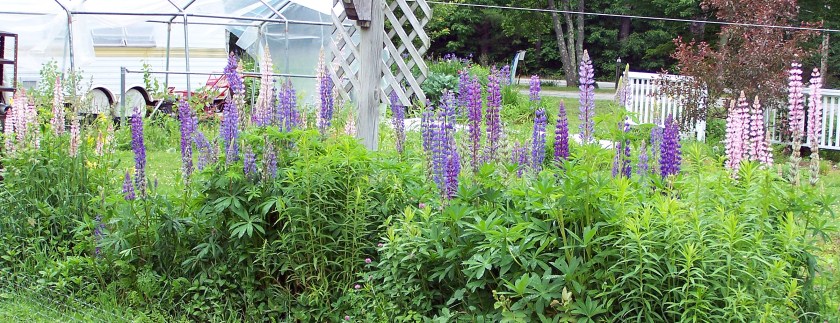Lupines are blooming everywhere now.   The lupines are one of the prettiest wildflowers in Maine.  They are everywhere–all along the sides of the roads, in the ditches, in fields.  I like them best when they have pink and white mixed into the blue.  There was a stand of them back of Rose’s house.