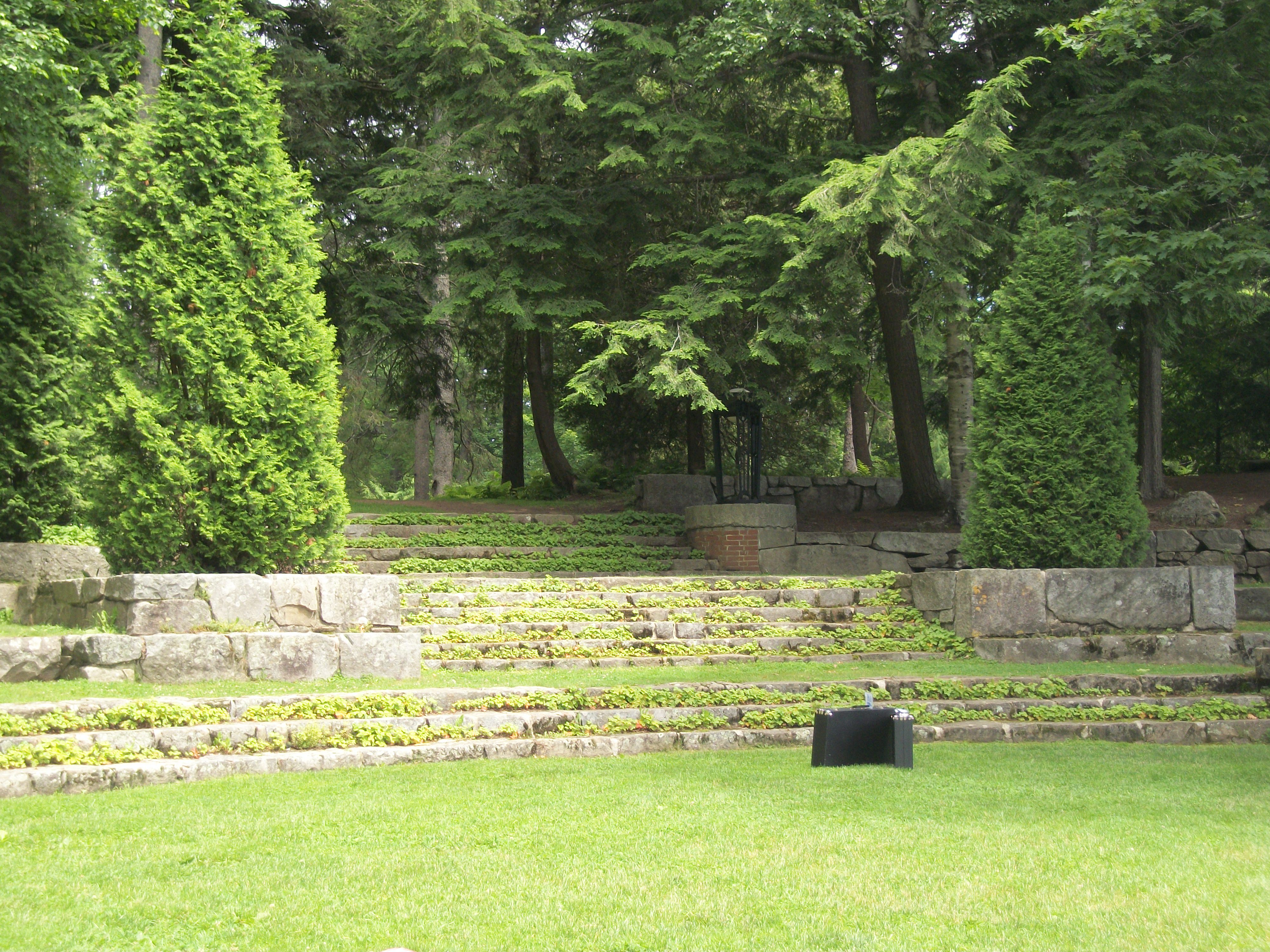 Here is a picture of one side of our amazingly beautiful Camden Library amphitheater where moss and wild strawberries grow in the cracks of the steps: