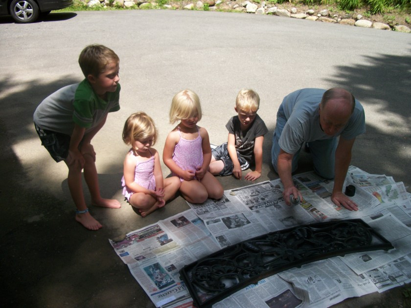 Pop and “the crew” took apart the garden bench and repainted all the metal: