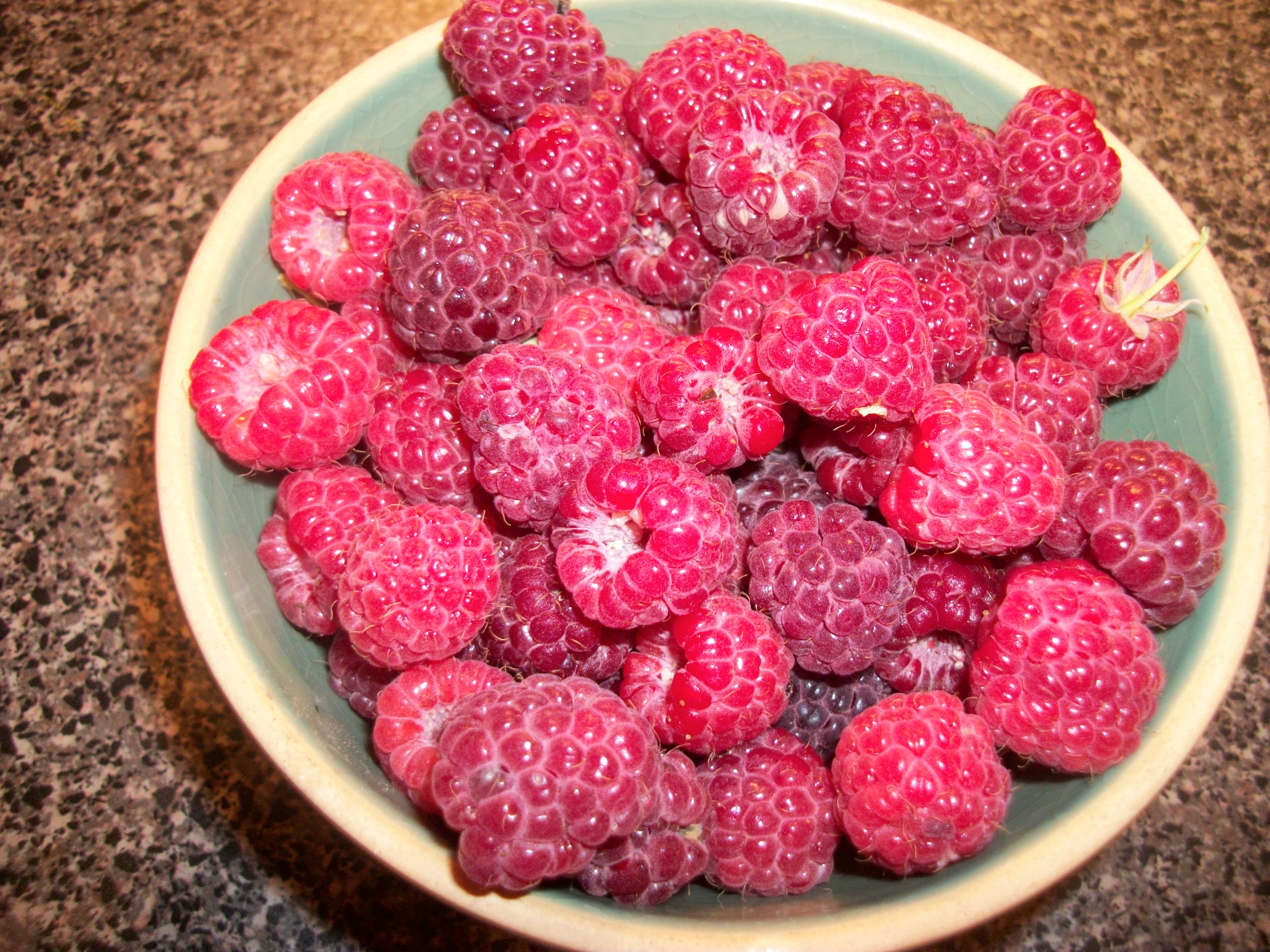 Garden Bounty pours forth.  Here’s a picture of fresh-picked raspberries.  The bushes are thriving on the chicken-coop bedding dressings in spring and fall.