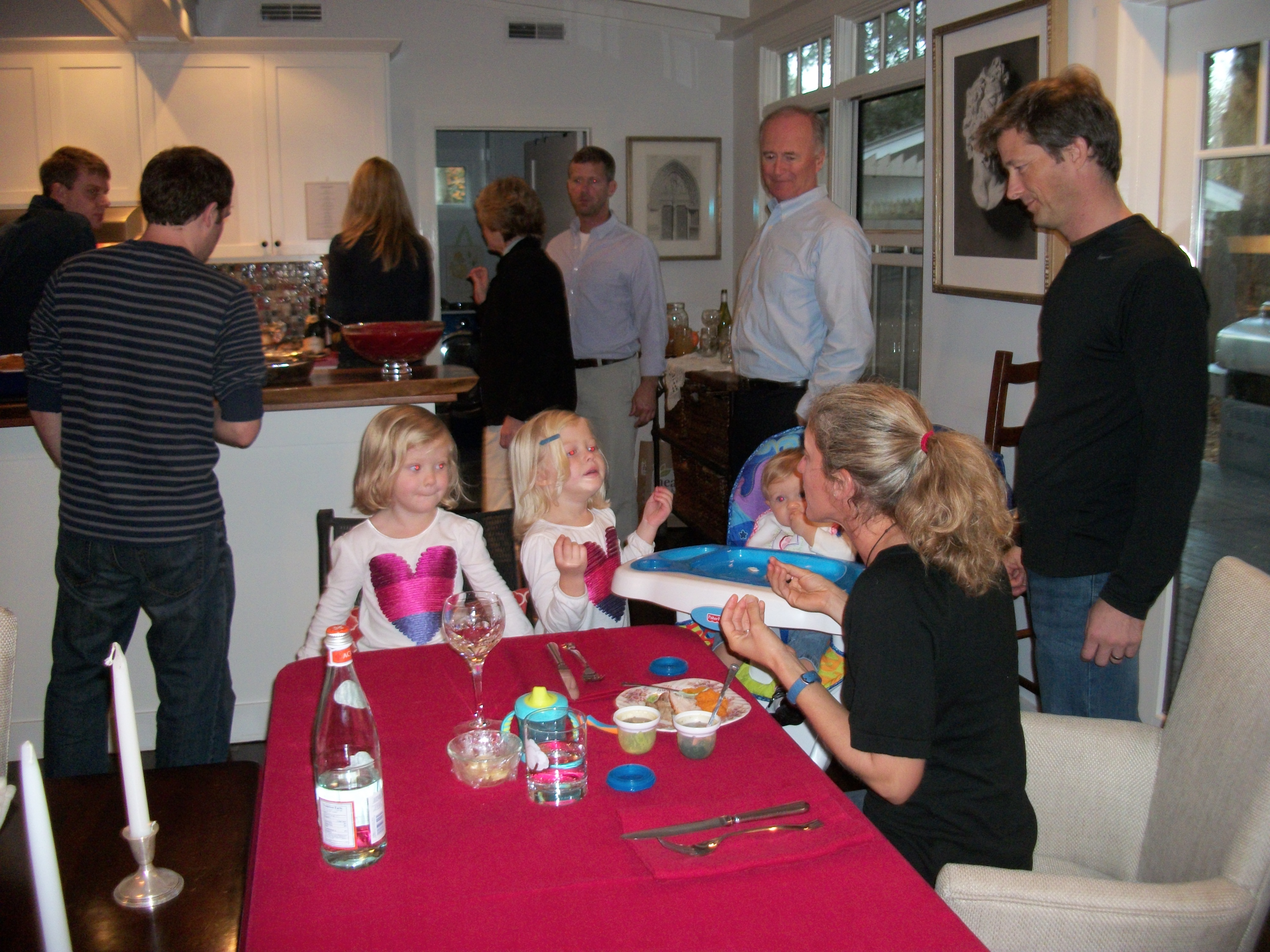 But, here’s one end of the table with Bryan, Corinne, and Ailey (who LOVES to sit in her high chair and eat), with Talula and Wilhelmina: