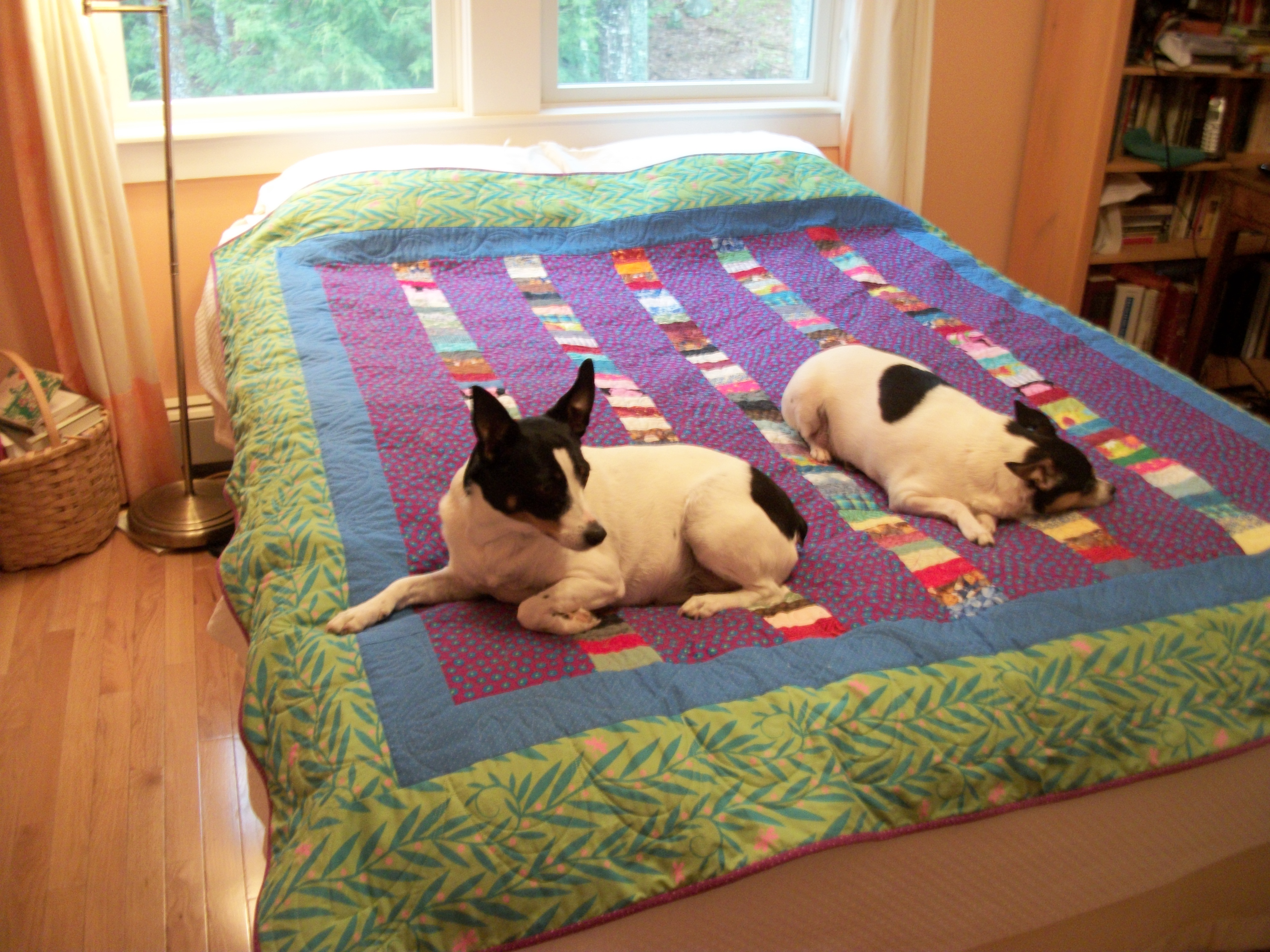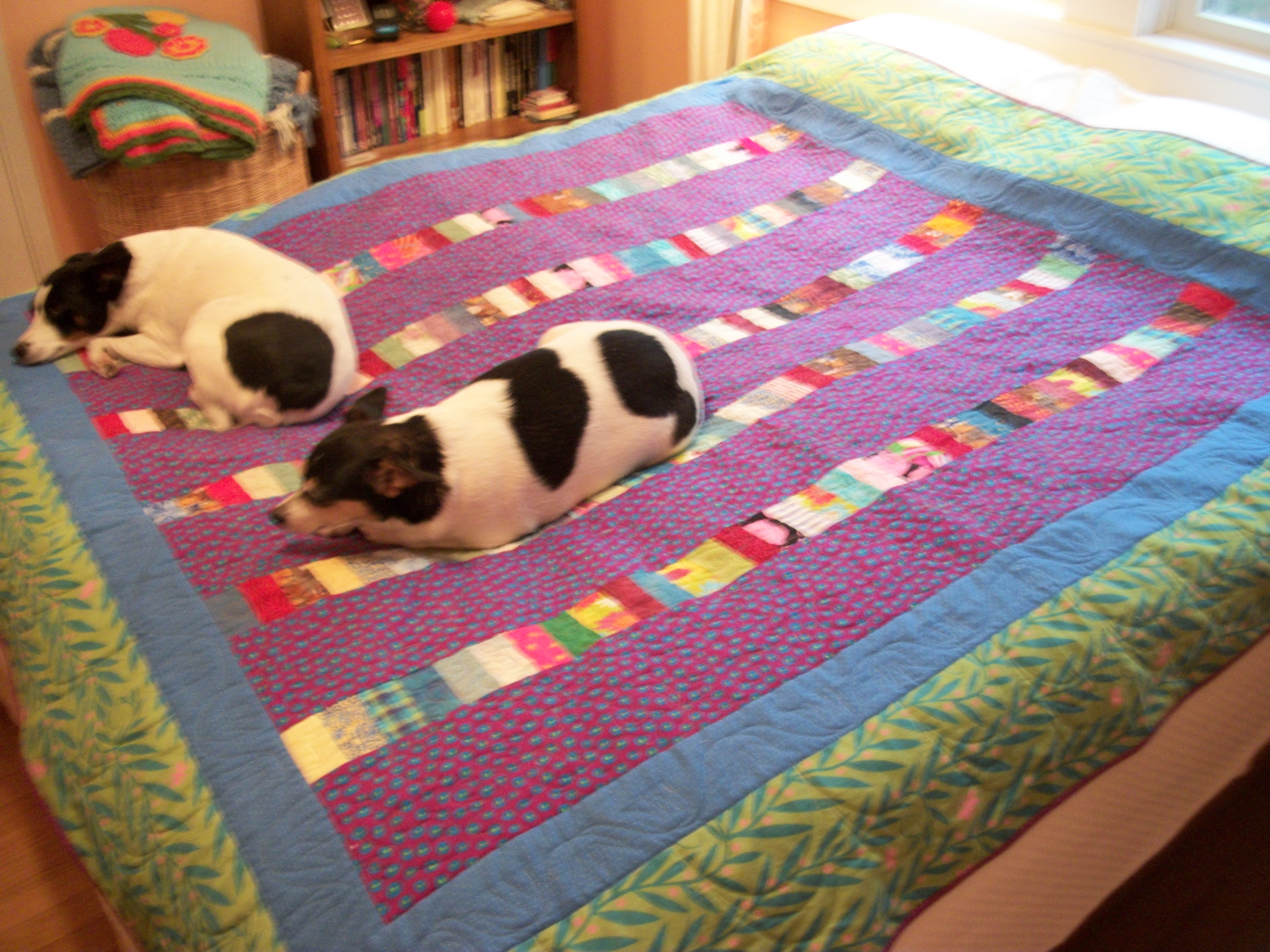 “Bar None” is all finished.  I LOVE this quilt–from the way it came together to the quilting in it and the binding of it.