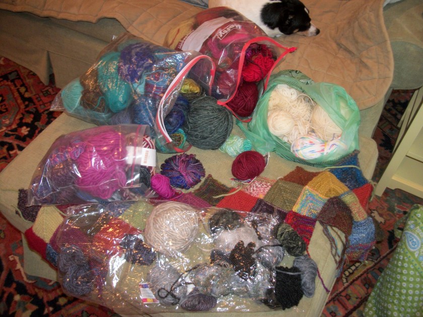 I put out a call to some knitting friends, who responded very generously (and in some cases happily as they got rid of scrap yarn too and it went for a nice purpose).