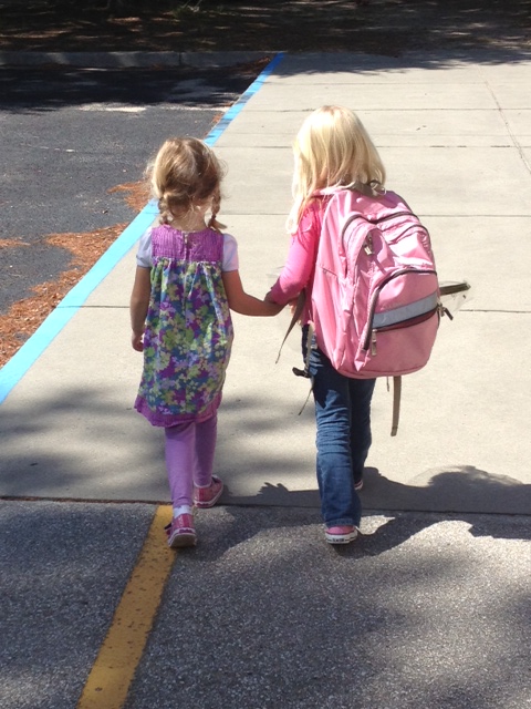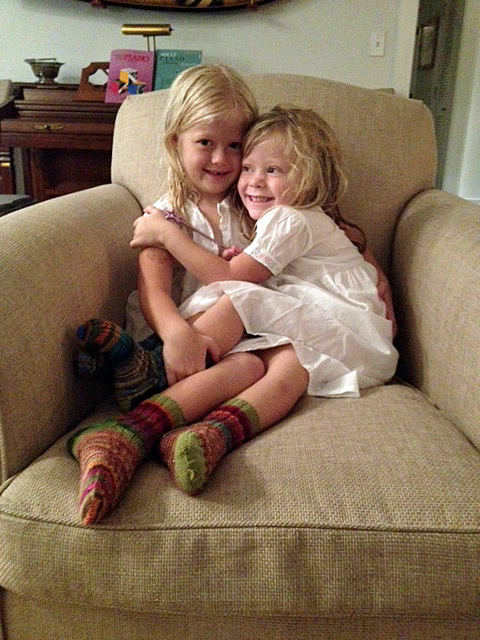First day in a new school. I made the dress Mina is wearing, on the left, some years back. Each girl had a matching dress, and I thought they were long outgrown.