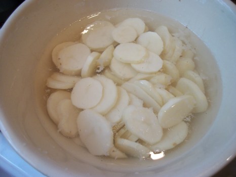 sliced potatoes in water