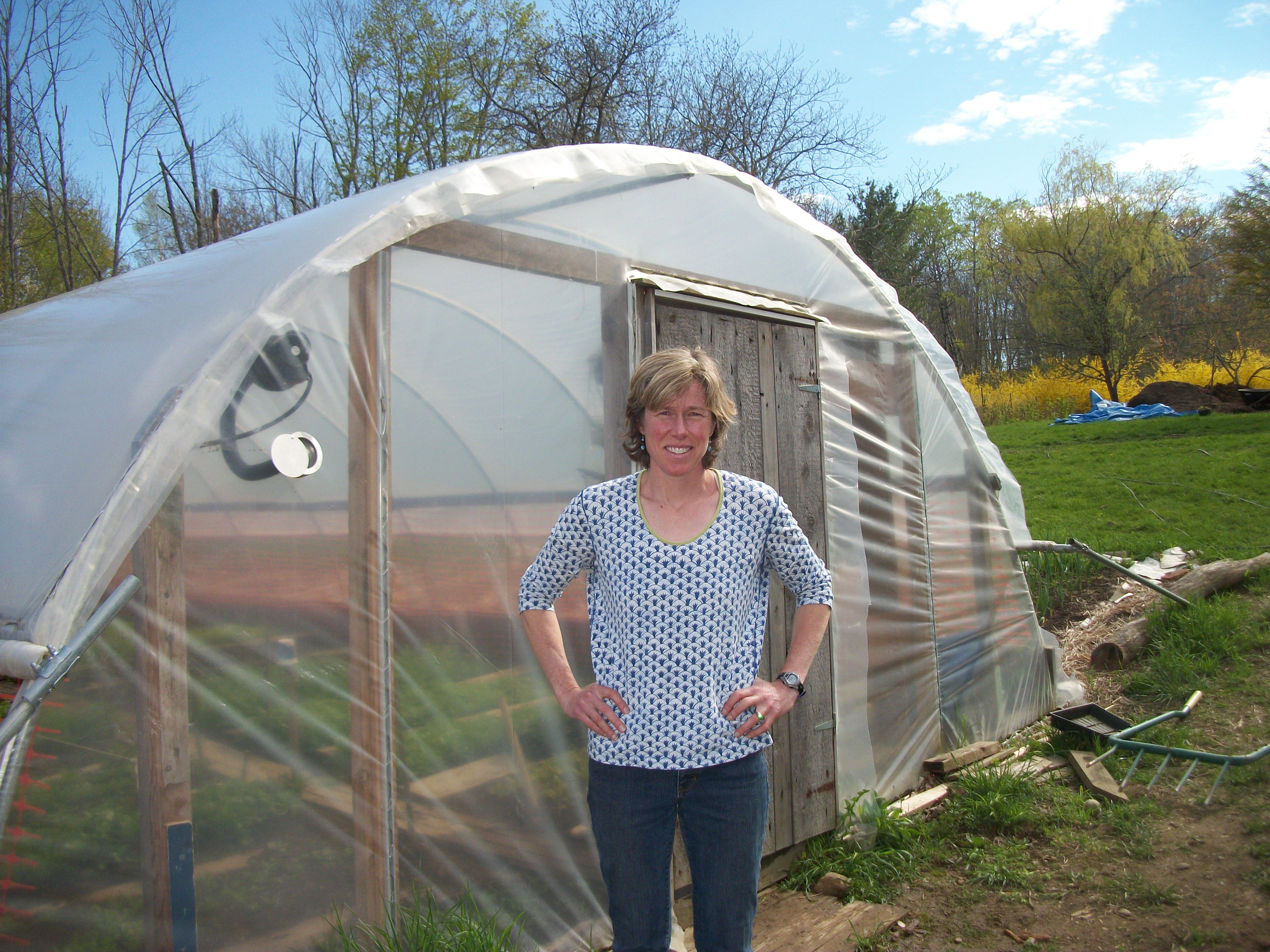 One of the things we did was to go up Howe Hill to Golden Brook Farm to get some spring greens–which are filling Susan McBride Richmond’s hoop houses now.