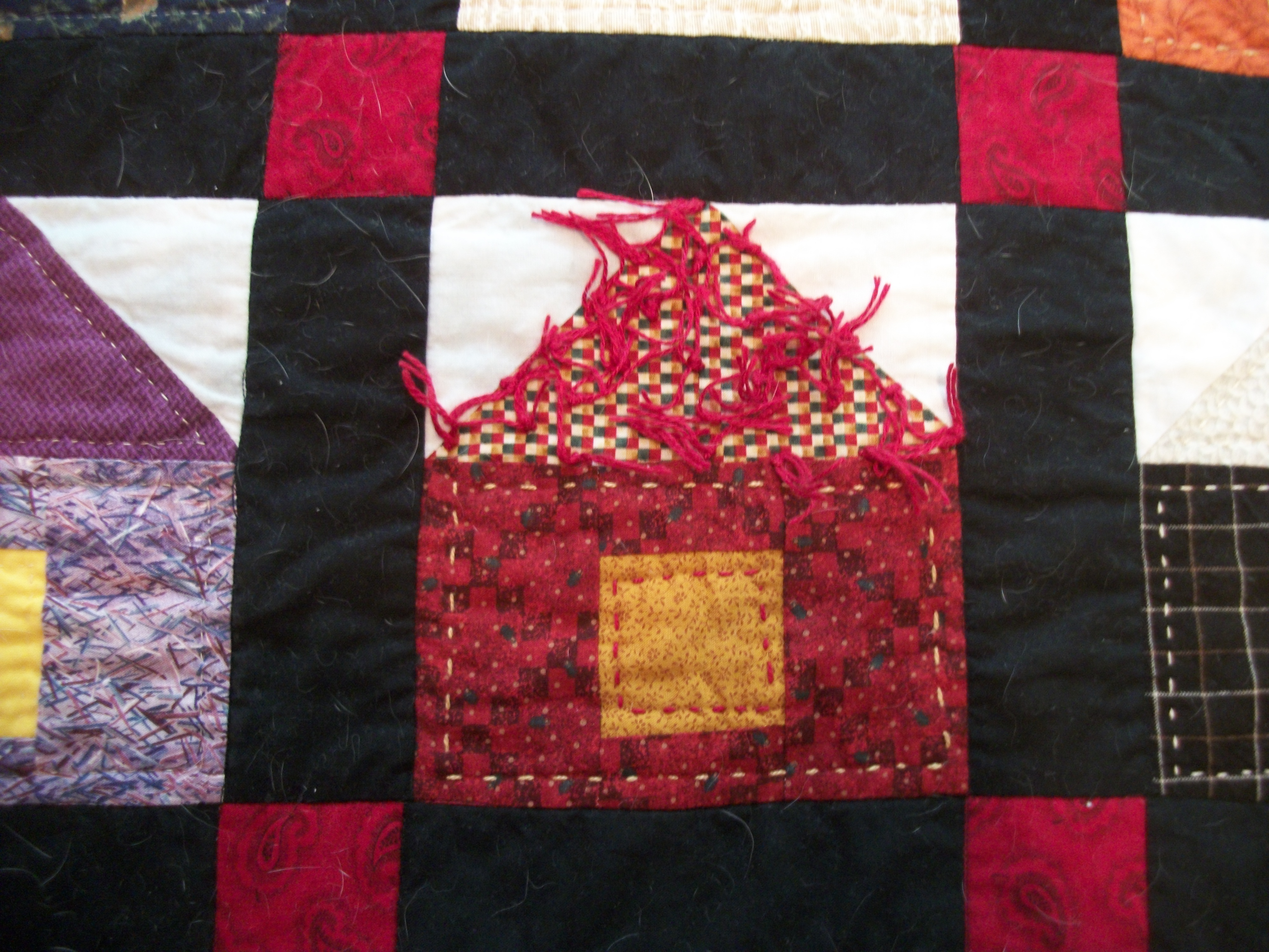 And–you can see I made some of them “fuzzy” with embellishing some texture into the block’s flatness. And, in places, hand quilted with embroidery thread with big stitches.
