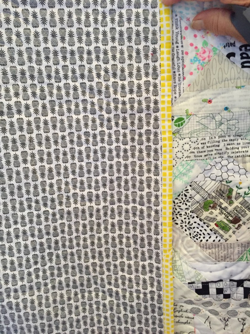 A Halloween quilt top she just finished–which is as lively as Halloween is.
