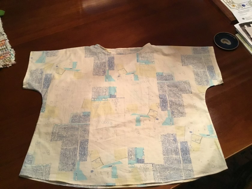 I am so enjoying making and wearing this 100 ACTS OF SEWING, shirt No 1. This is the second version–made with Carolyn Friedlander lawn. It layers so beautifully over a tank top–or with a long-sleeve t-shirt. The lawn needs an under layer unless, maybe you are young and have a cute bra. I have also made a khaki double gauze version since I took this picture, but have not worn it yet. I wanted it as a layer over my black stretch jeans. My first top was a blue double-gauze, which you can see in an earlier post.