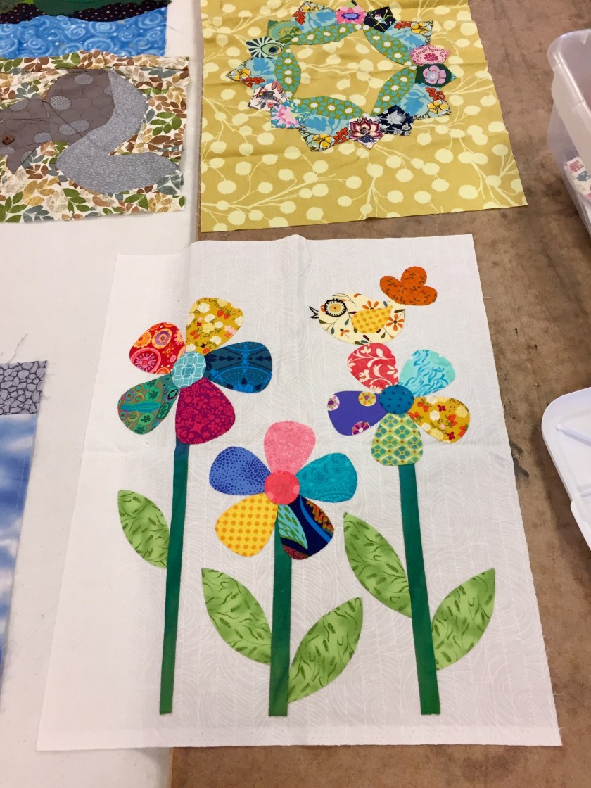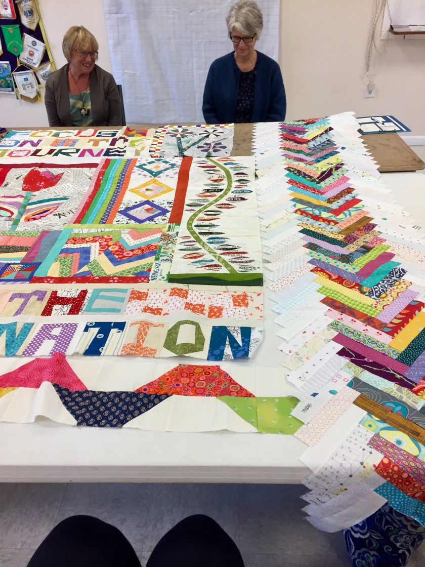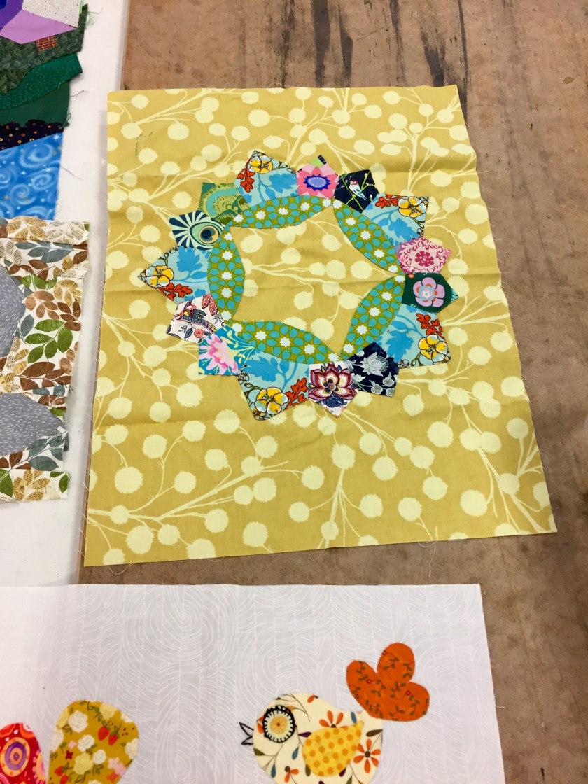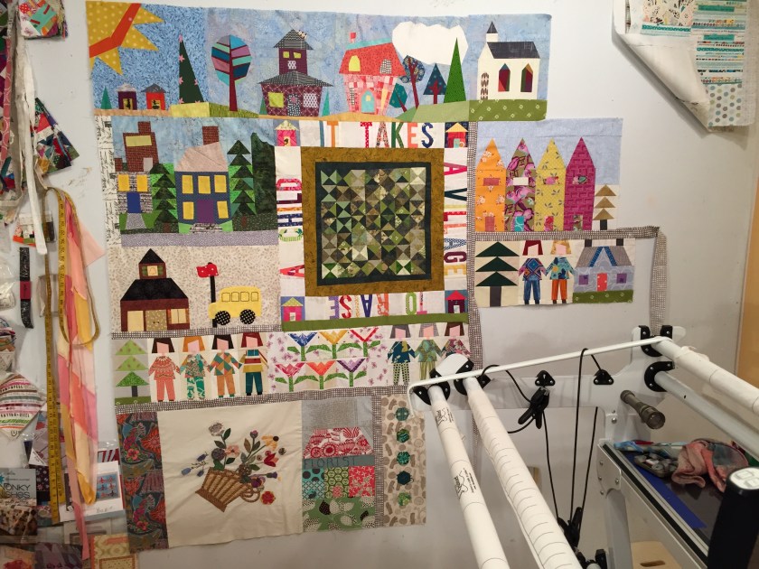 It’s on the long arm, waiting for me to figure out how on earth to quilt it. I have been playing around with trying to do a bigger “McTavishing” quilting, but I can’t quite make it work in a way that I like. I’ve gone through a whole pad of BIG drawing paper trying. It might work out, but… I am not sure. It’s a very dense quilting style, and I’m not sure I want that kind of density in this already dense top, what with the selvages… It definitely needs a curvy quilting style. Or so I think.