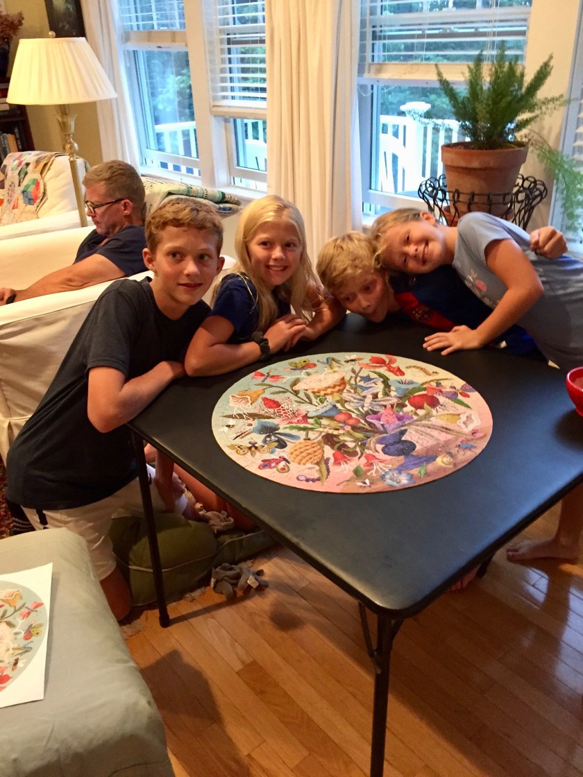 One of the things I love about my two families’ visits is that we all “make our own fun.” There was very little tv and no entertainment consumed that someone else did for these children. Both sets of parents spent their vacation being with their children. I suspect that this kind of thing is a rarity these days.