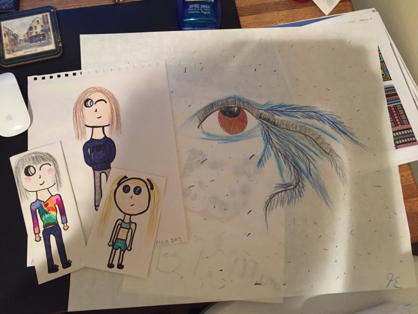 I found lots of secret notes left for me in my quilt room and in the garage, along with art work made especially for me.