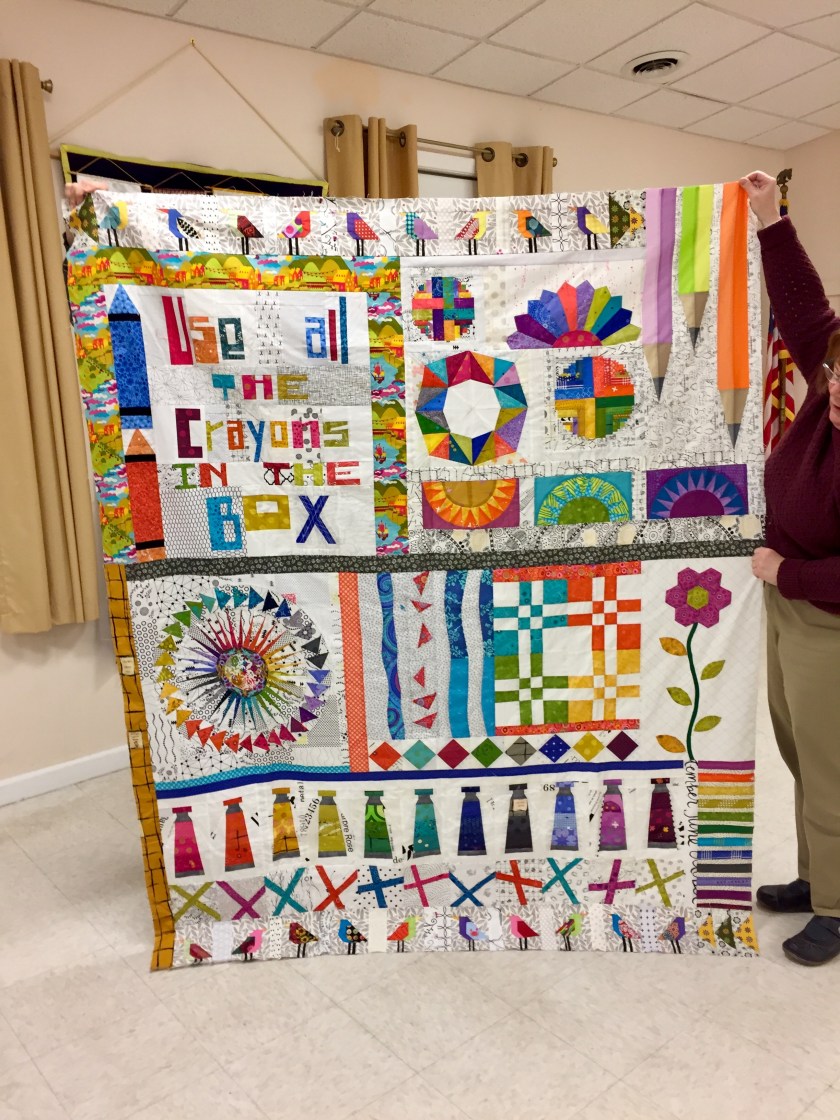 Nancy Wright will leave Maine shortly for her Florida winter home, so in addition to her finished traveling quilt, which she left with us to show, she brought the quilts she is working on or has finished.