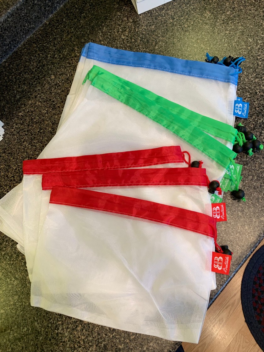In addition, I ordered produce bags that will go to the grocery store with me and that are washable, etc. They are meant to go right into the refrigerator, are washable, and will work to replace plastic bags. They are a fine mesh. I may have to wrap something like fragile lettuce in some damp paper towels, but…we’ll see.