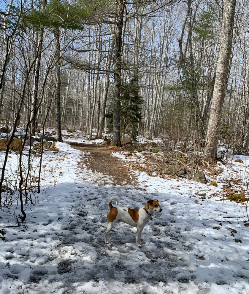 He celebrated with a long walk on the still-icy Erickson Trail. We had about 6 inches of snow Monday night.
