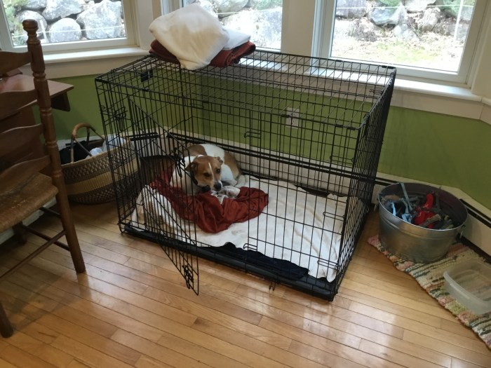 After his morning trip to Laite Beach at low tide and his lunch, he has put himself in his “house.”