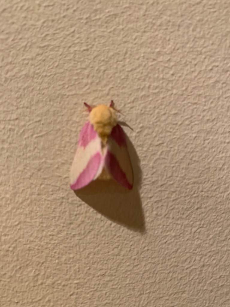 It’s a moth associated with maple trees: the rosy maple moth, or Cosmoth.