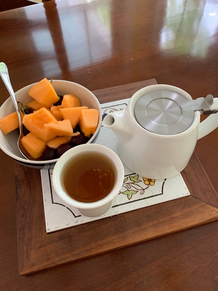 Look at this adorable little teapot I found in the back of a cabinet when I took everything out to wash and reorganize. I had totally forgotten about it—which makes sense as I have not been able to drink tea, given my Histamine Intolerance issues. (Black and green teas are fermented and inhibit one of the two enzymes one needs to process an overload of histamine.) I think it might have been a gift, but I have long since forgotten who gave it to me—along with its two adorable little cups.