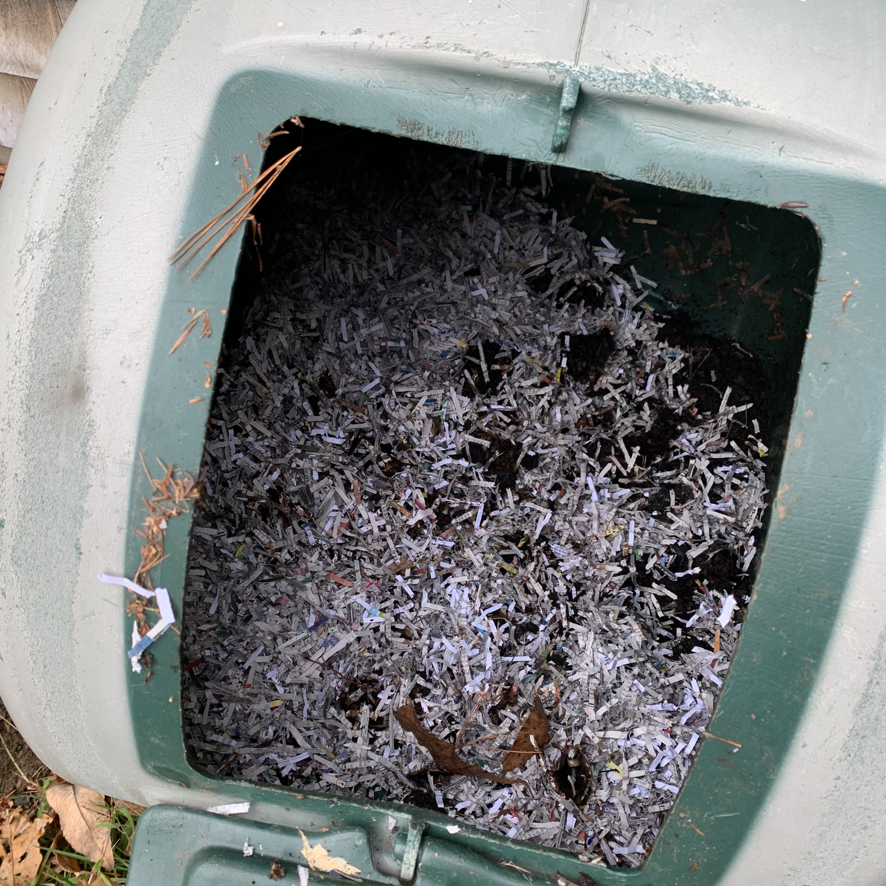 I’ve been putting newspaper through the shredder and using it to augment the compost bins—which need more “brown” material as they are too wet.