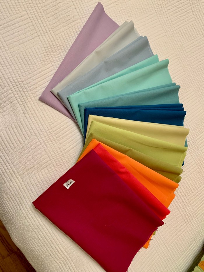 For the first project of Season 3 of the online class The Color Collective Tara Faughnan designed her “Marrakesh” block and curated a selection of 12 Kona cotton colors. (Amy Newbold of Sewtopia hosts this class. And congrats to Amy as she is now setting up an actual quilt store building in addition to her online business.)