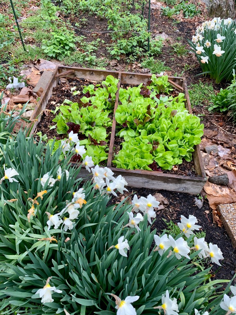 Everything is so green and lush outside! The lettuce in my cold frame is ready to be eaten now: