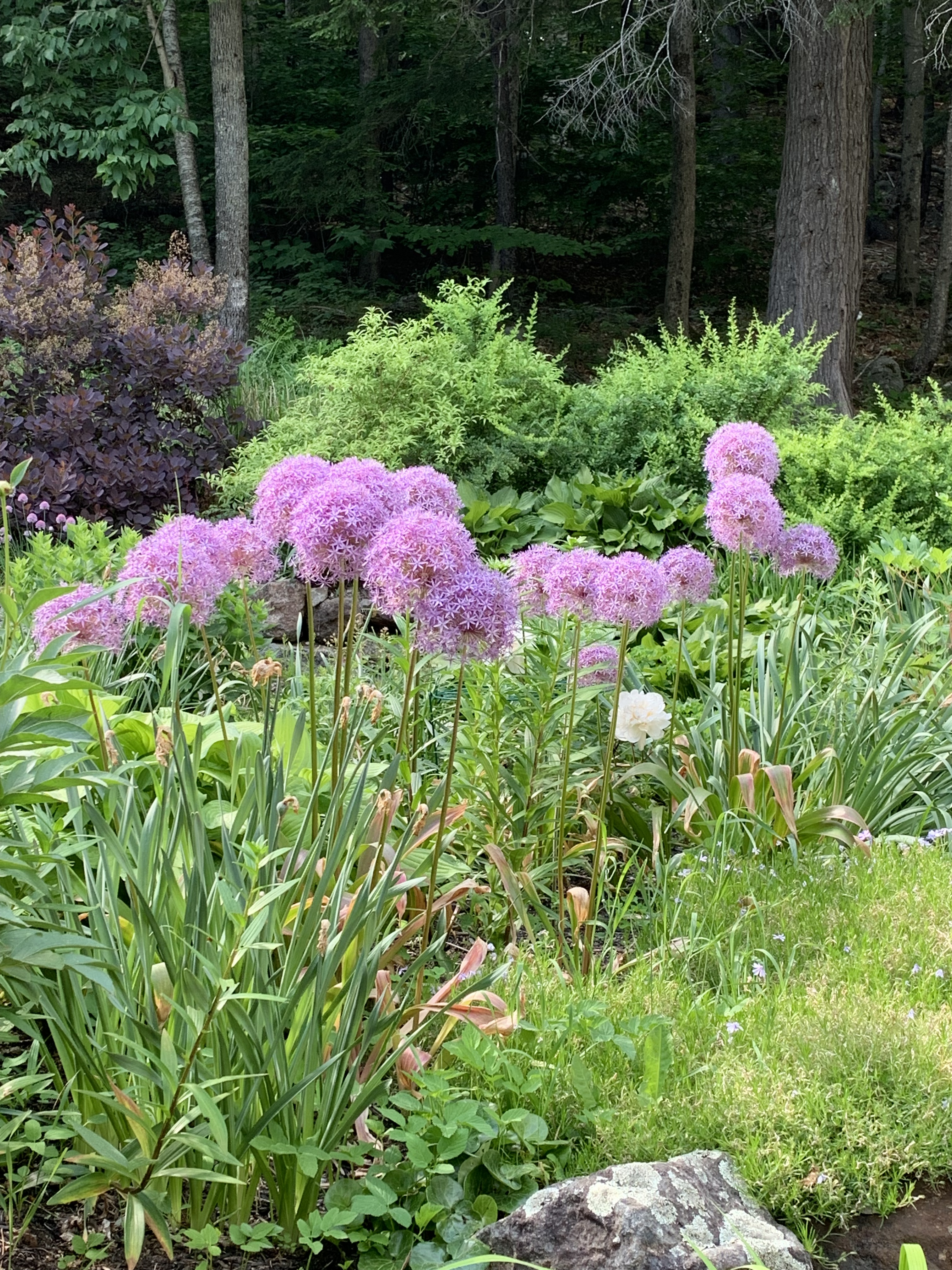 The Globemaster alliums are in full bloom. I love the individual star shapes of their big globe flowers.