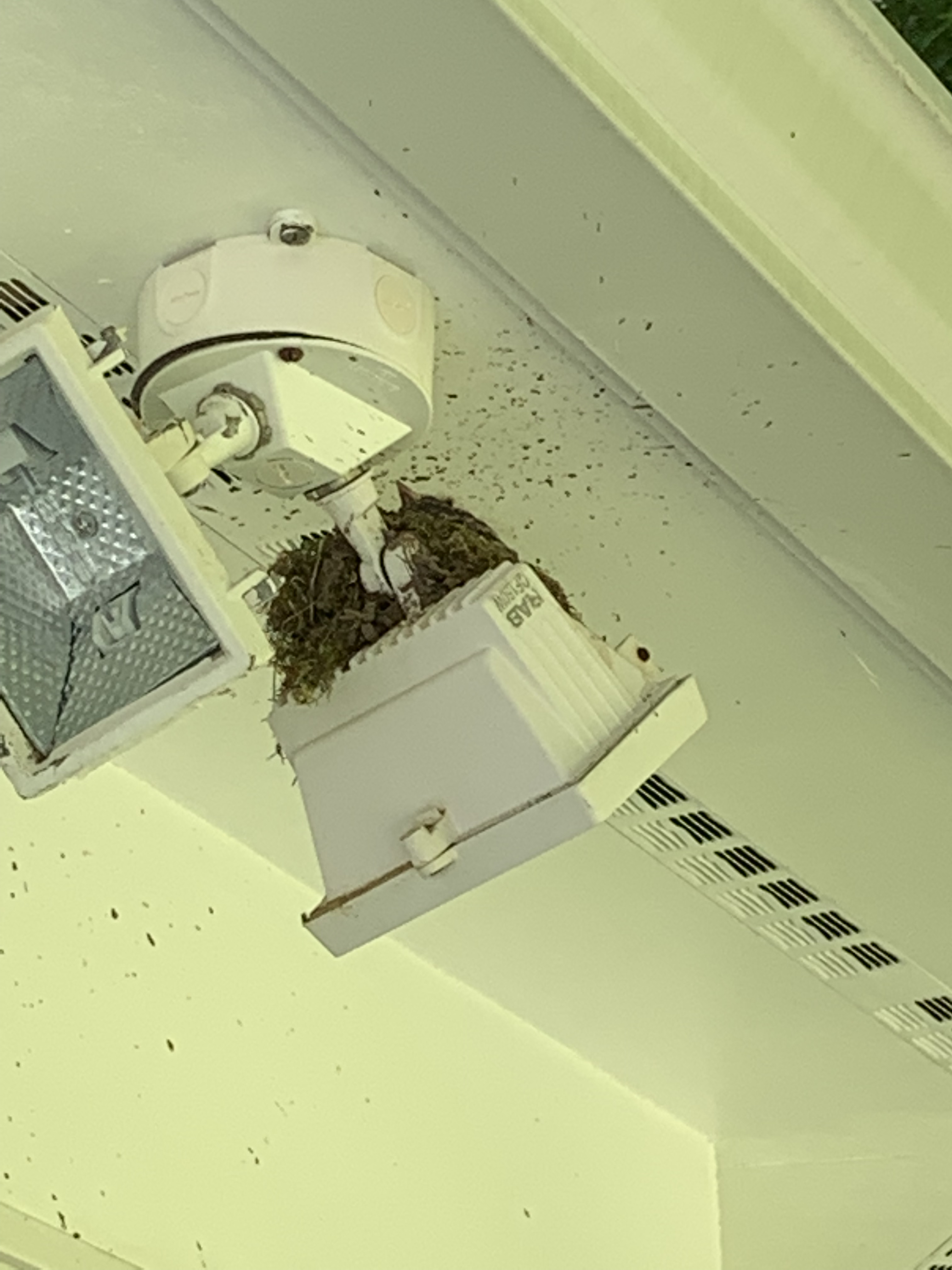 This outdoor light sits just above my kitchen windows, so I can peer up at the nest from inside the house.