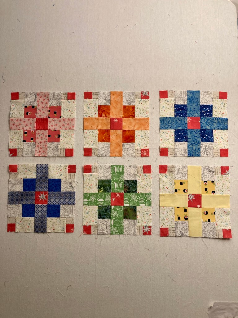 Though I already have too many ongoing projects, I can see myself starting to make some of these fun blocks here and there. I always get enthralled with pulling fabrics for a scrappy block.