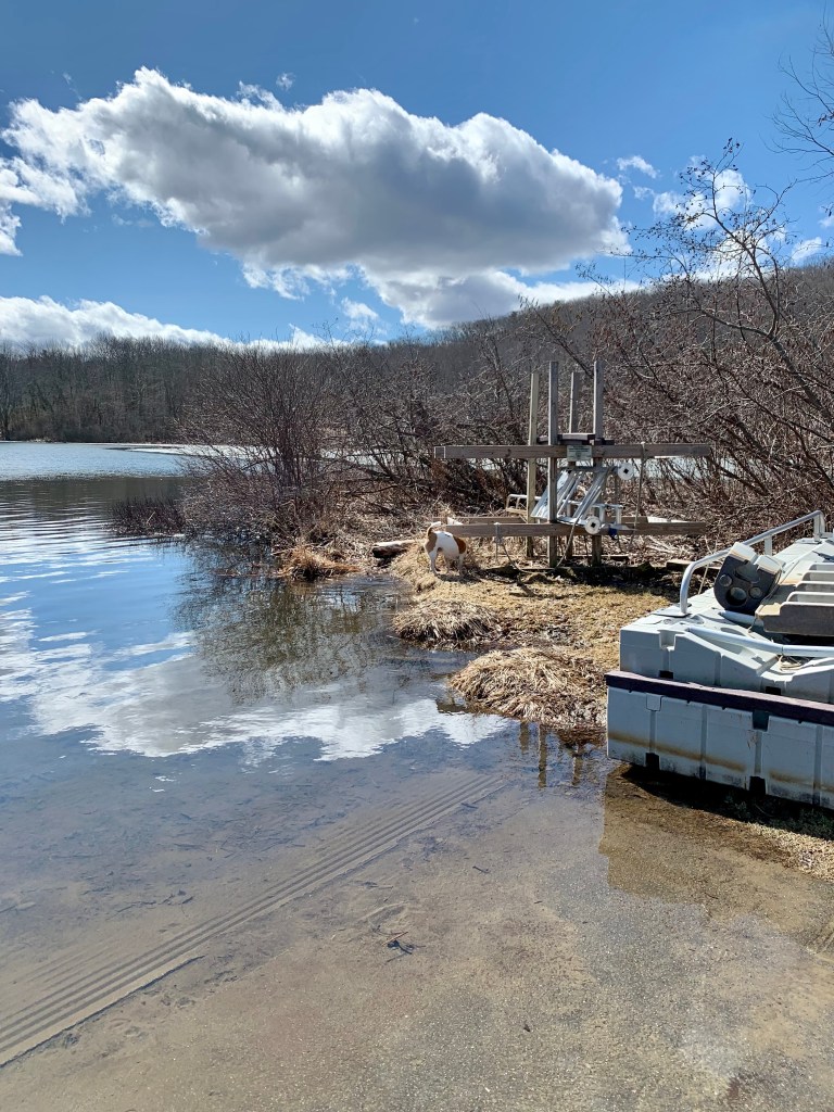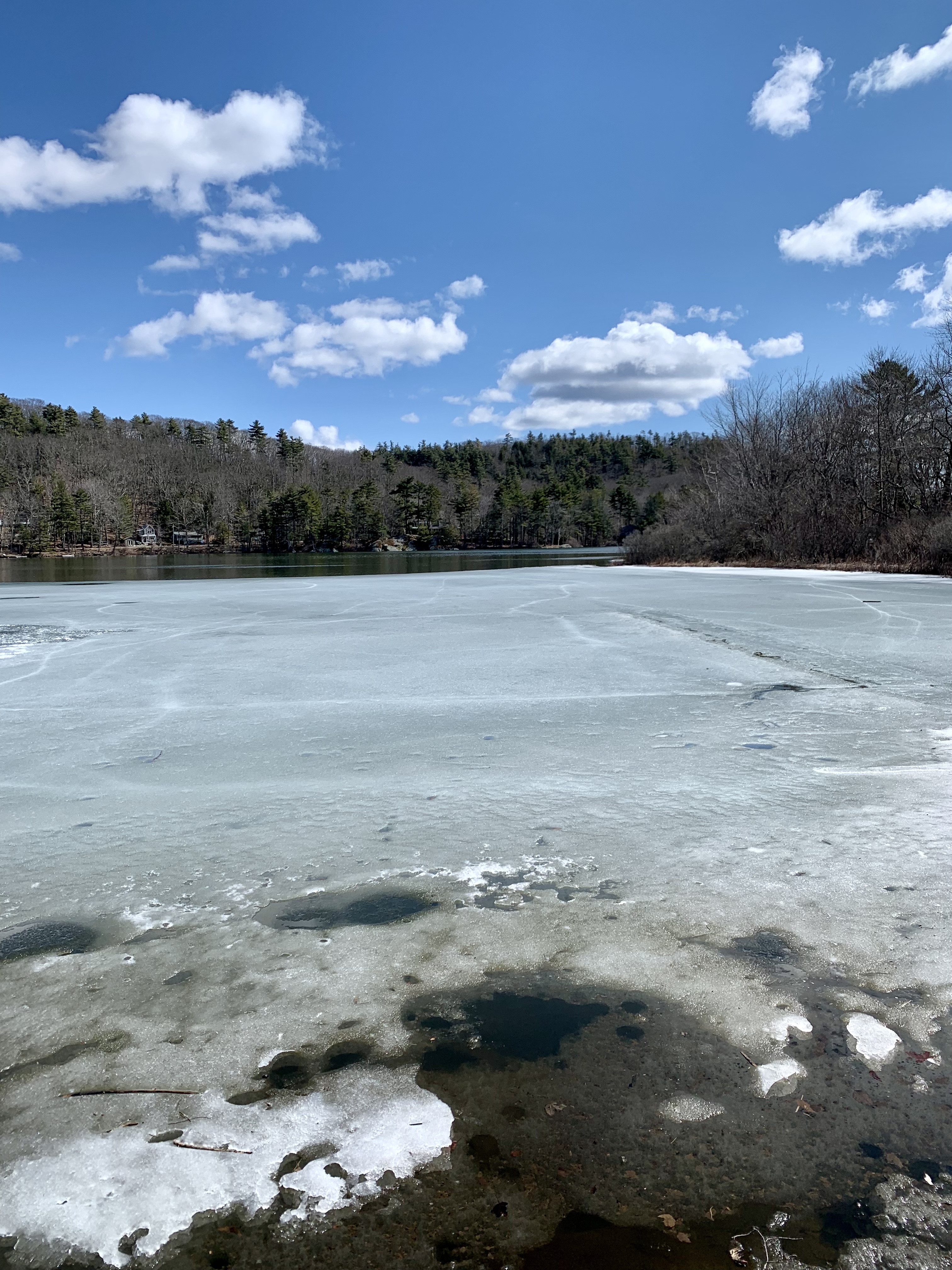 The ice is almost out of the pond on the Snow Bowl side. You can see what ice remains on the far right, over by the toboggan run.