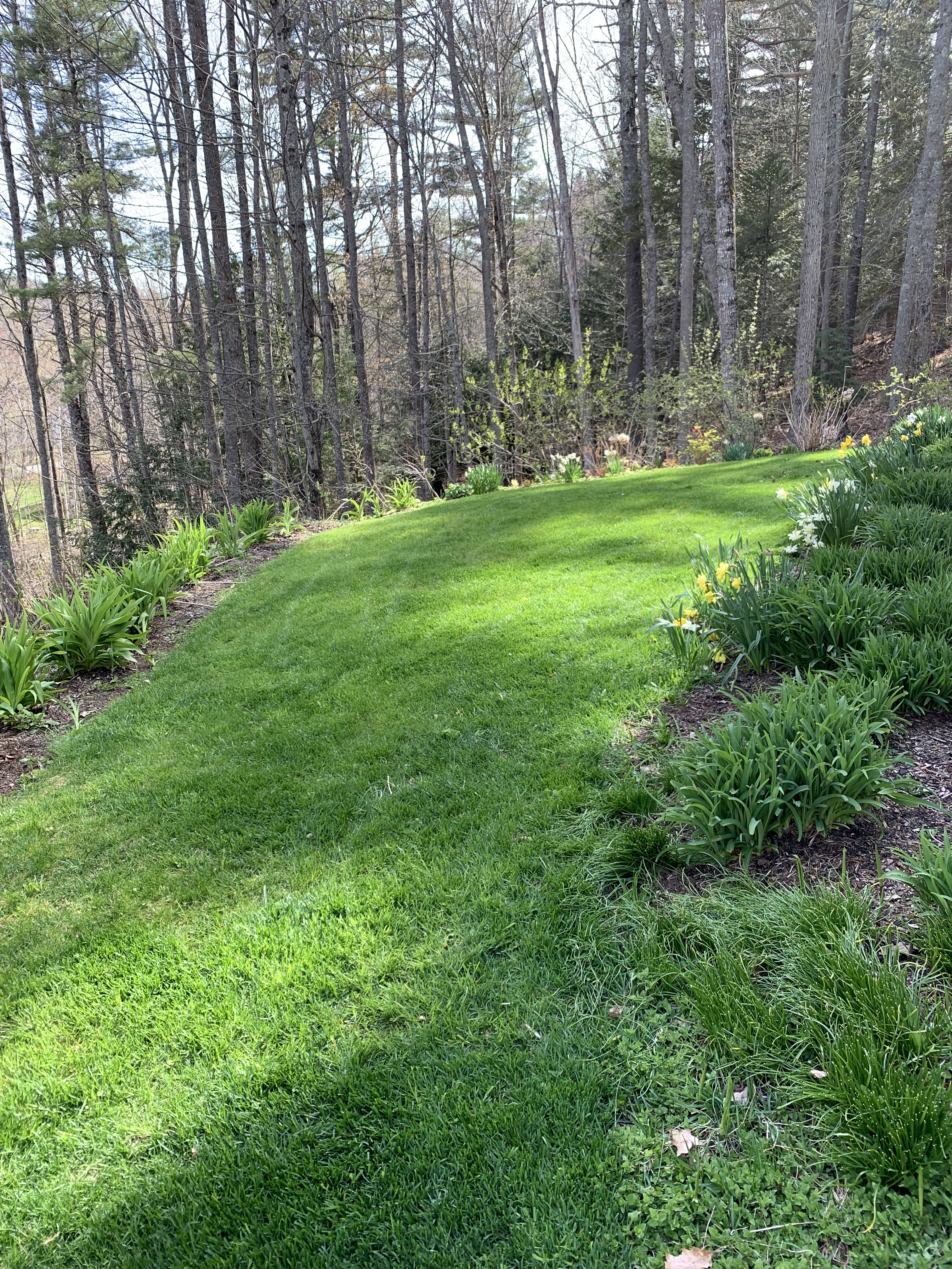 I got out my little electric mower and did the first mow. Look how pretty the grass is now.
