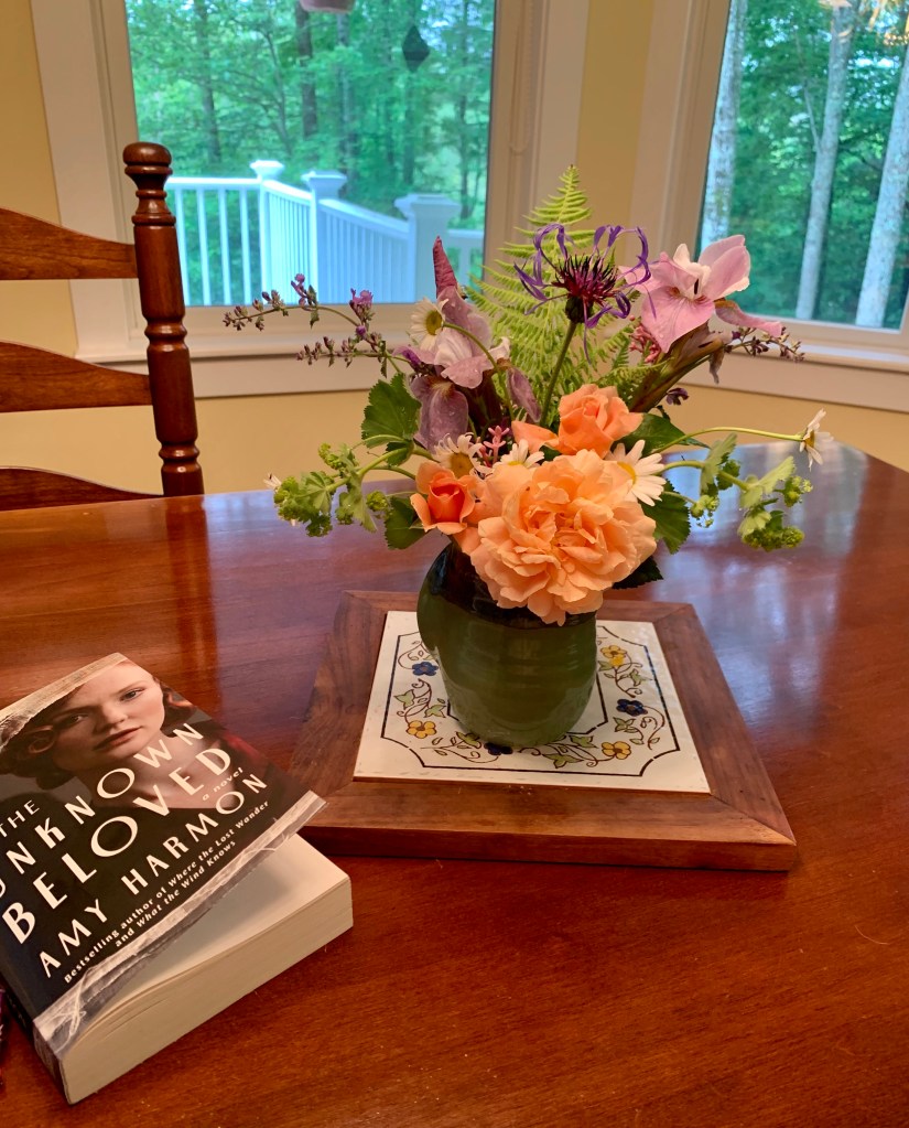In between some of the rain bands I replenished the inside flowers I’ve been cobbling together in the past few weeks—as the garden is not in full bloom yet. And yes, I got a bit sidetracked with pulling weeds as they practically jumped into my hands from the rain-soaked soil.