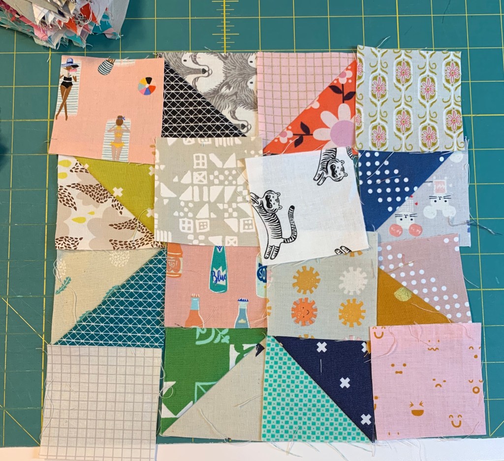 One could also use more half-square triangles in that large center. I’d keep the 4 corners in solids though.