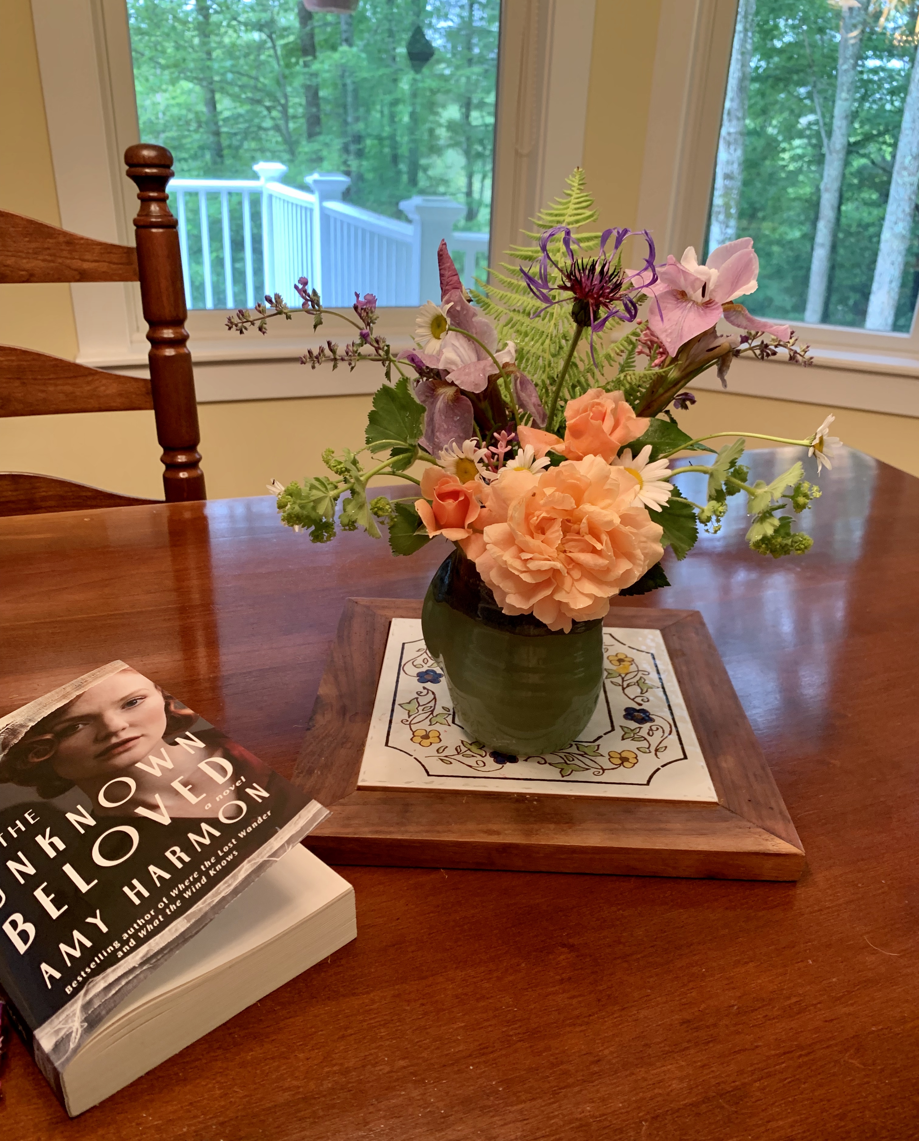 In between some of the rain bands I replenished the inside flowers I’ve been cobbling together in the past few weeks—as the garden is not in full bloom yet. And yes, I got a bit sidetracked with pulling weeds as they practically jumped into my hands from the rain-soaked soil.