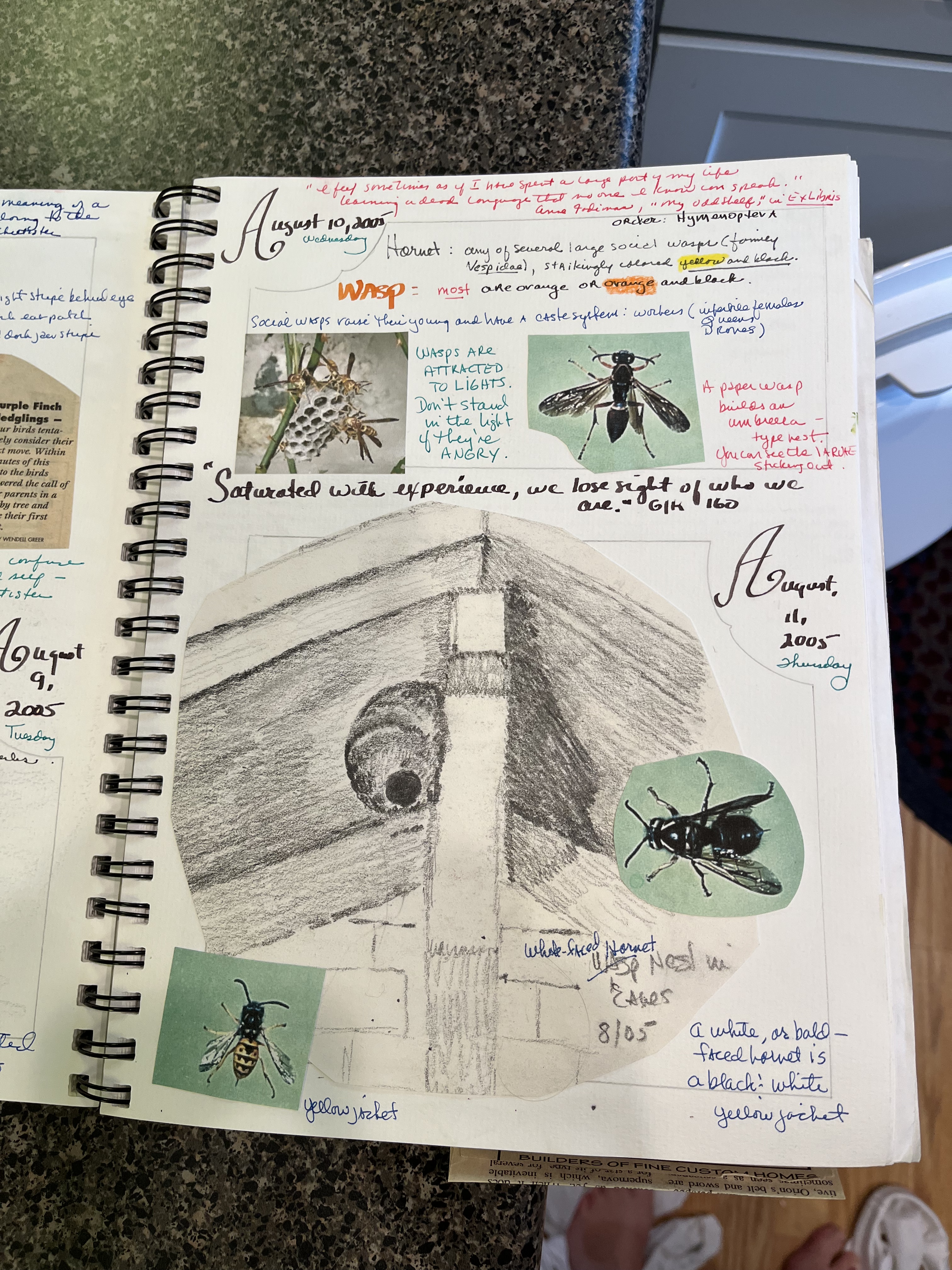 Here’s the page I did on August 10th—about wasps and hornets. And it sorts out the hornets and the wasps.