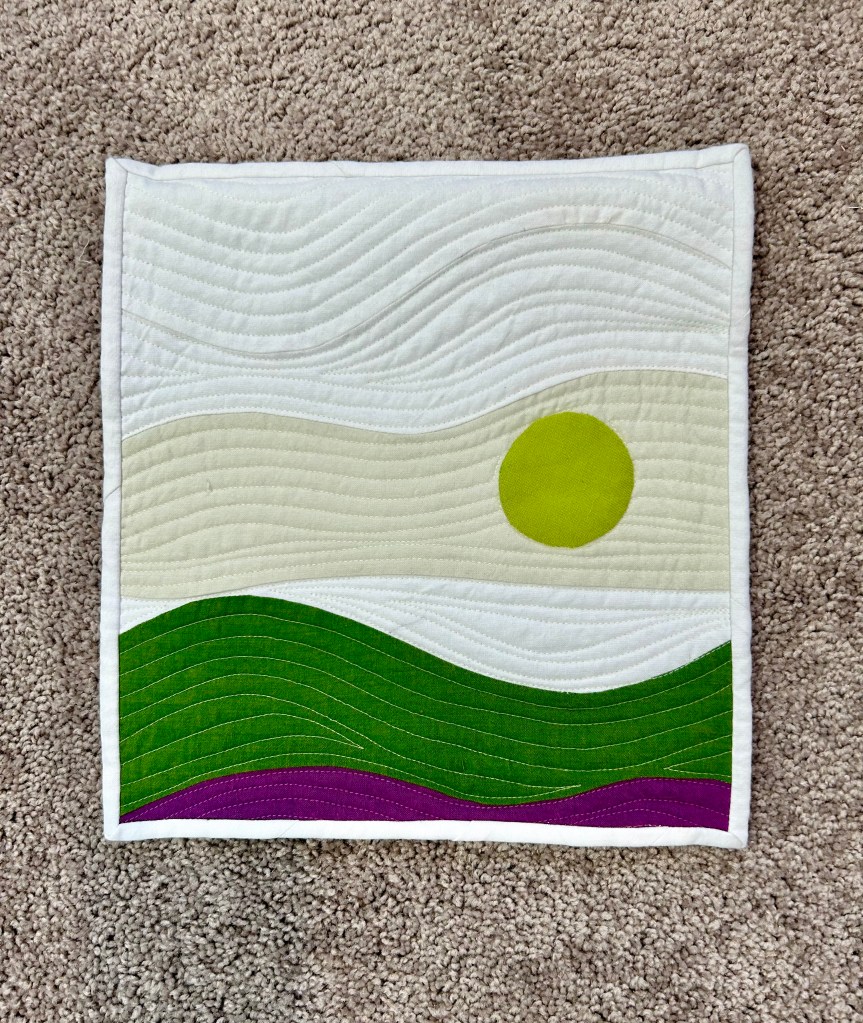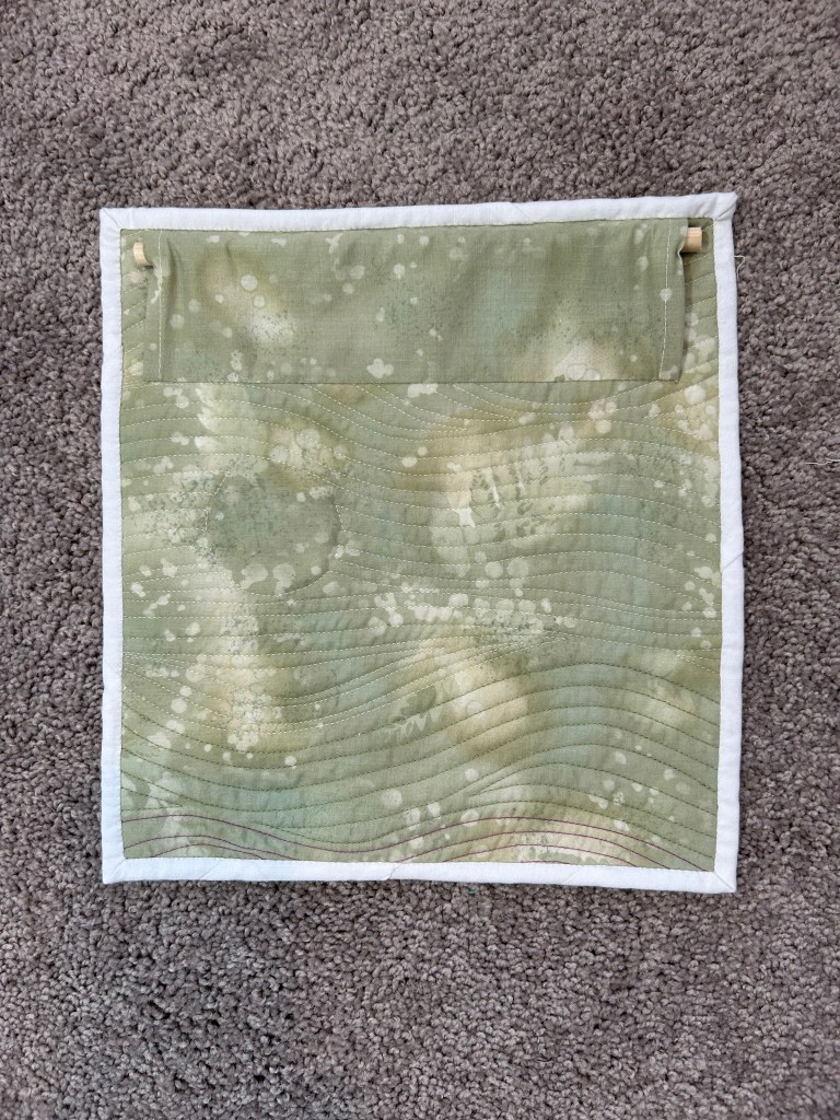 Thus, the most important thing with hanging quilts is installing a hanging sleeve that is level with the top of the quilt AND that allows space on the outer sides for the dowel/rod to show.