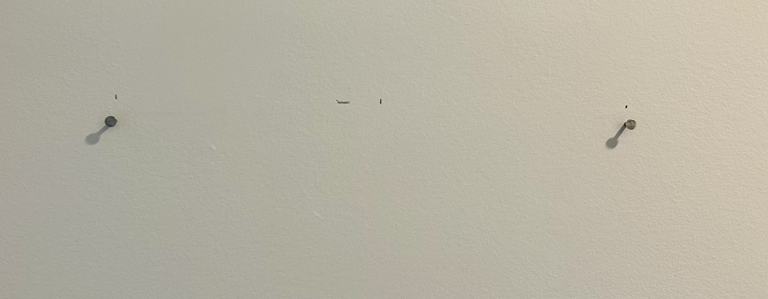 Lay your dowel where you want it on the wall and mark where you want the nails to go. Remember to put the nails at least 1/4 inch or a bit more from the edge of the dowel. The position of the nails will be a bit different for a curtain rod depending on the decorative end of the rod. The nails have to be inside those ends and very close or inside each side of the quilt edge. Then use a leveler to make darn sure the dowel/rod is level. I have a long leveler and a short one. After I put in the nails, I use the leveler again to make sure all is level at that stage. And I check again after I hang the quilt as it is fairly easy at that point to remove a nail and replace it if needed.