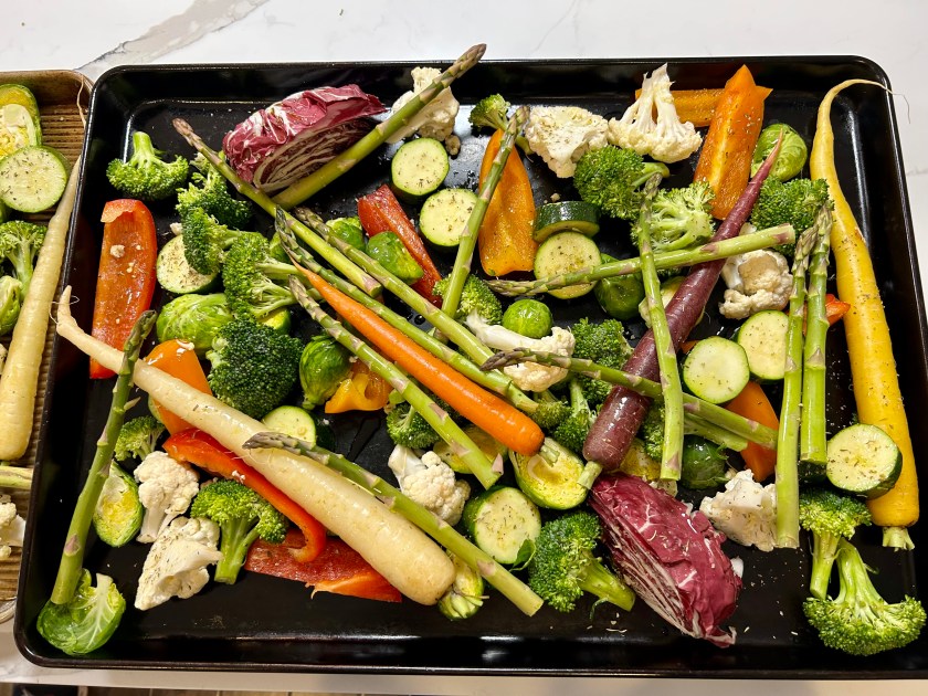 I’ve never seen veggies done this way in big pieces. They were delicious! I came home with some of the leftovers. They are so pretty when cooked too.