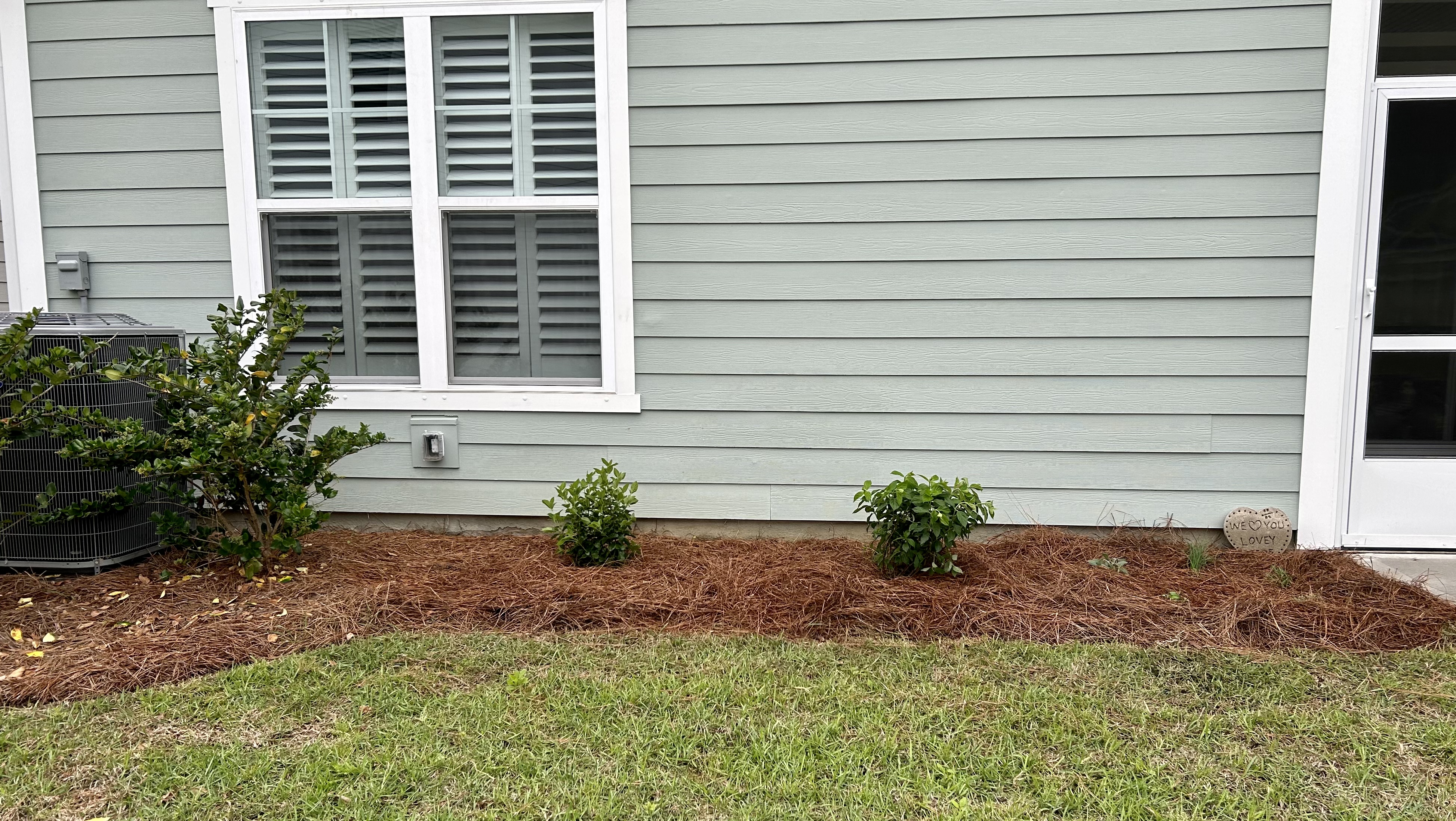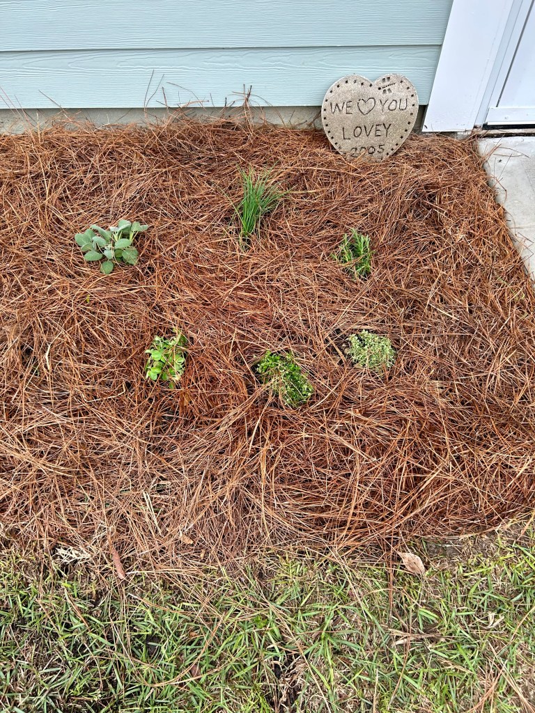 I took a chance with the grass as we were clearly getting a BIG storm in the night which would provide me with adequate rain for the grass. And, the temps dropped into the 60s. So Saturday saw me outside early morning, between storms, digging holes, adding amendments, and planting the new plants. My soil here is all clay–it is like digging in cement when it is dry.