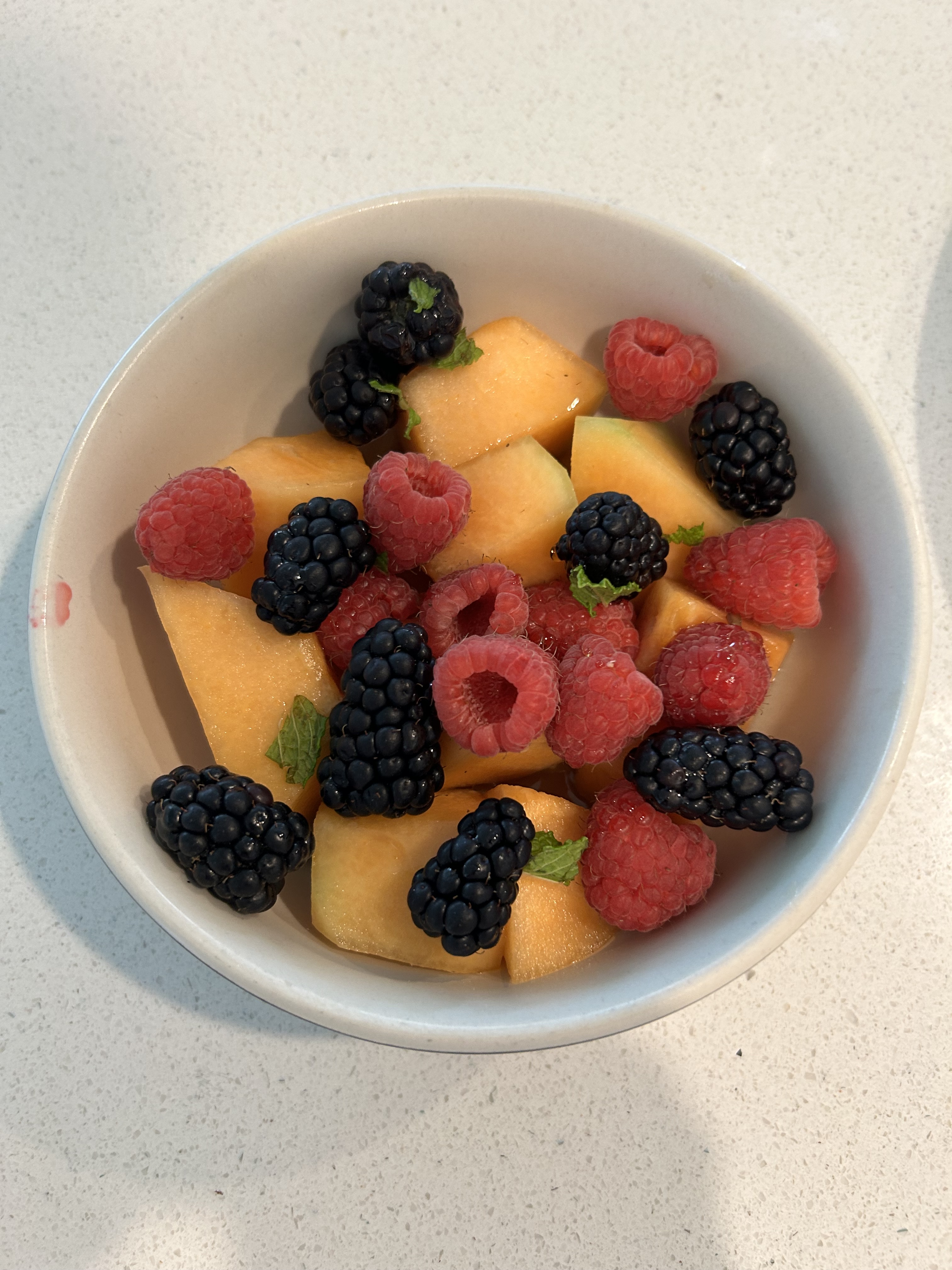 Then there was fresh fruit with a drizzle of maple syrup and bits of mint leaves from the herb garden, which is thriving.