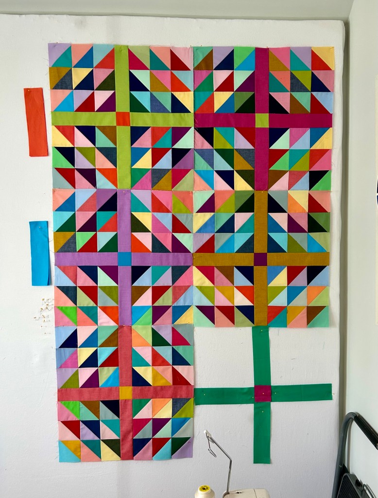 But, first, here are the 3rd set of blocks for the Summer Camp Mystery from the Modern Quilt Studio. There will be 6 installments, and the next set comes next Friday. After the 4th set, I may pin all the blocks so far to the design wall to just…admire them? Yes, admire and pet, but also to see how my palette is working together and if I need to make any changes.