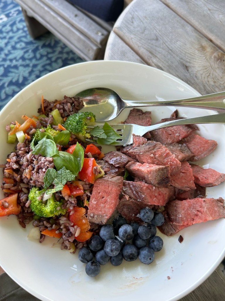 And, this bit of easy cooking provided the bulk of two days of meals–given that I eat two meals a day: dinner at noon and something fairly light for supper at night.