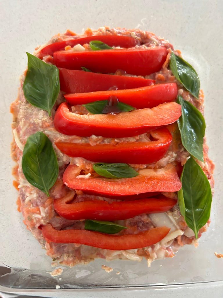 I’ve blogged about my basic meat loaf recipe many times now, probably, LOL, more than many want to read about again. But for the moment, I can’t find the last time I wrote about making meatloaf. Basically, I use ground hamburger or bison, to which I add an egg, some oatmeal, some good fat if the meat is too lean, some cream sometimes, some grated veggie (carrot, zucchini), some chopped onion, some cheese (mozzarella for me), some herbs, and salt.