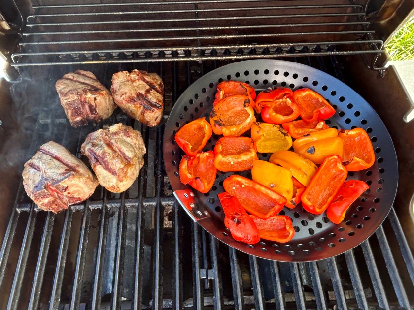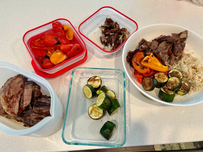 The rest is no surprise to you blog readers: grilled lamb chops and sweet peppers and some of the Carolina Gold Rice. (I couldn’t find any organic Carolina Gold Rice at Whole Foods so will call Anson Mills again tomorrow.) Grilled sweet peppers are so much sweeter than they are roasted in the oven or the Air Fryer.