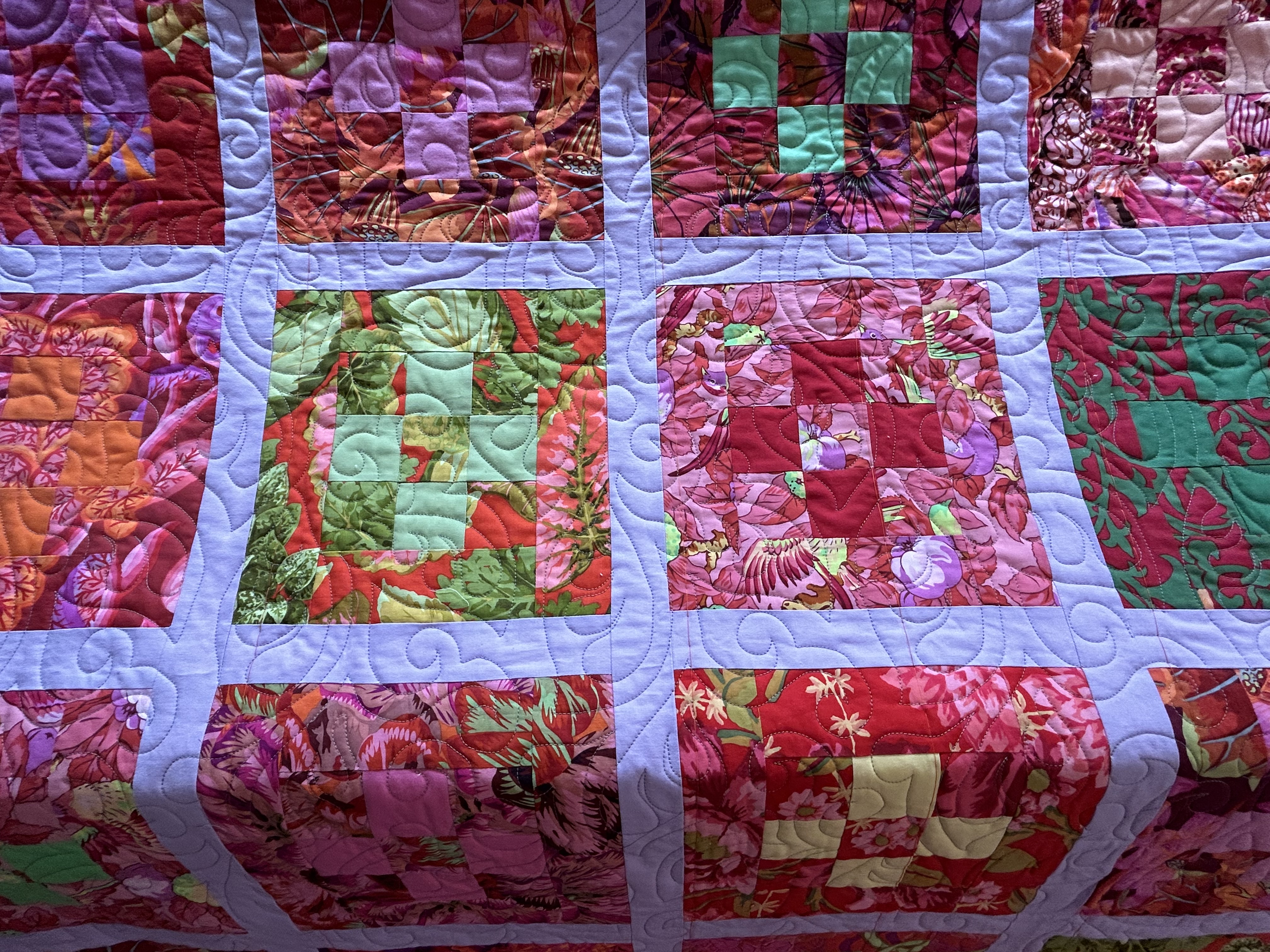 The quilting came out really well: Acadia pantograph. I wanted something curvy and with some hint of plants.
