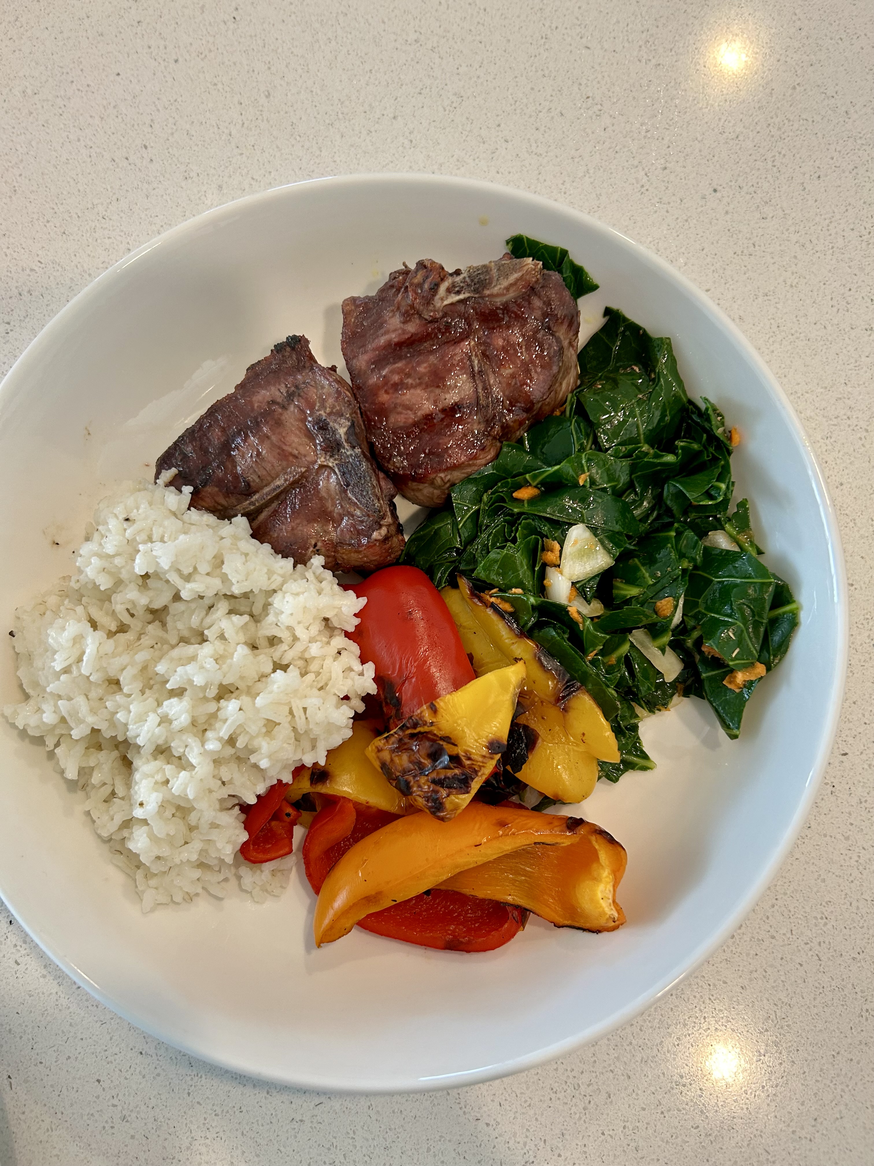 The rest is no surprise to you blog readers: grilled lamb chops and sweet peppers and some of the Carolina Gold Rice. (I couldn’t find any organic Carolina Gold Rice at Whole Foods so will call Anson Mills again tomorrow.) Grilled sweet peppers are so much sweeter than they are roasted in the oven or the Air Fryer.