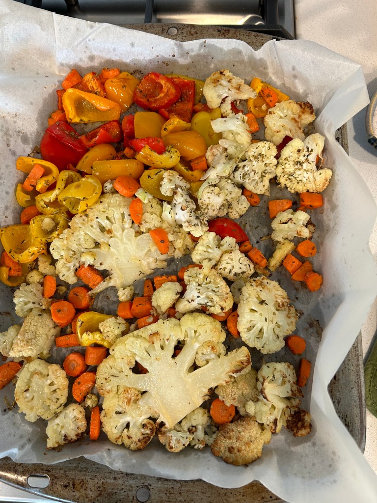 And I keep meaning to show this picture of roasted veggies, just because they are so pretty. And, were delicious.