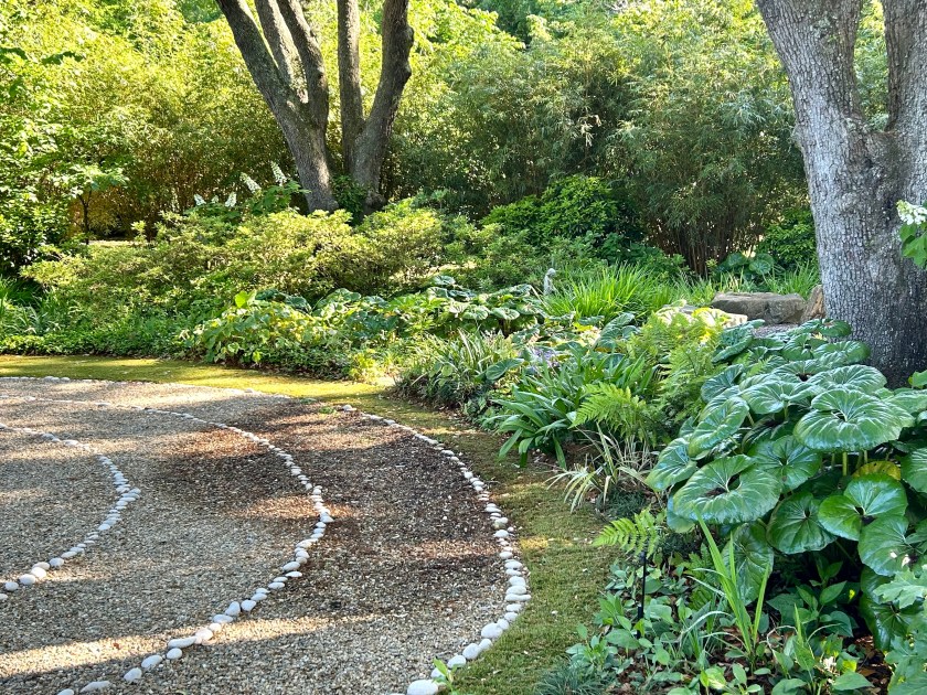 Here is a Sunday treat for you: pics of a local Serenity Labyrinth Garden that my local dermatologist installed some time ago, given the mature plants that surround it.