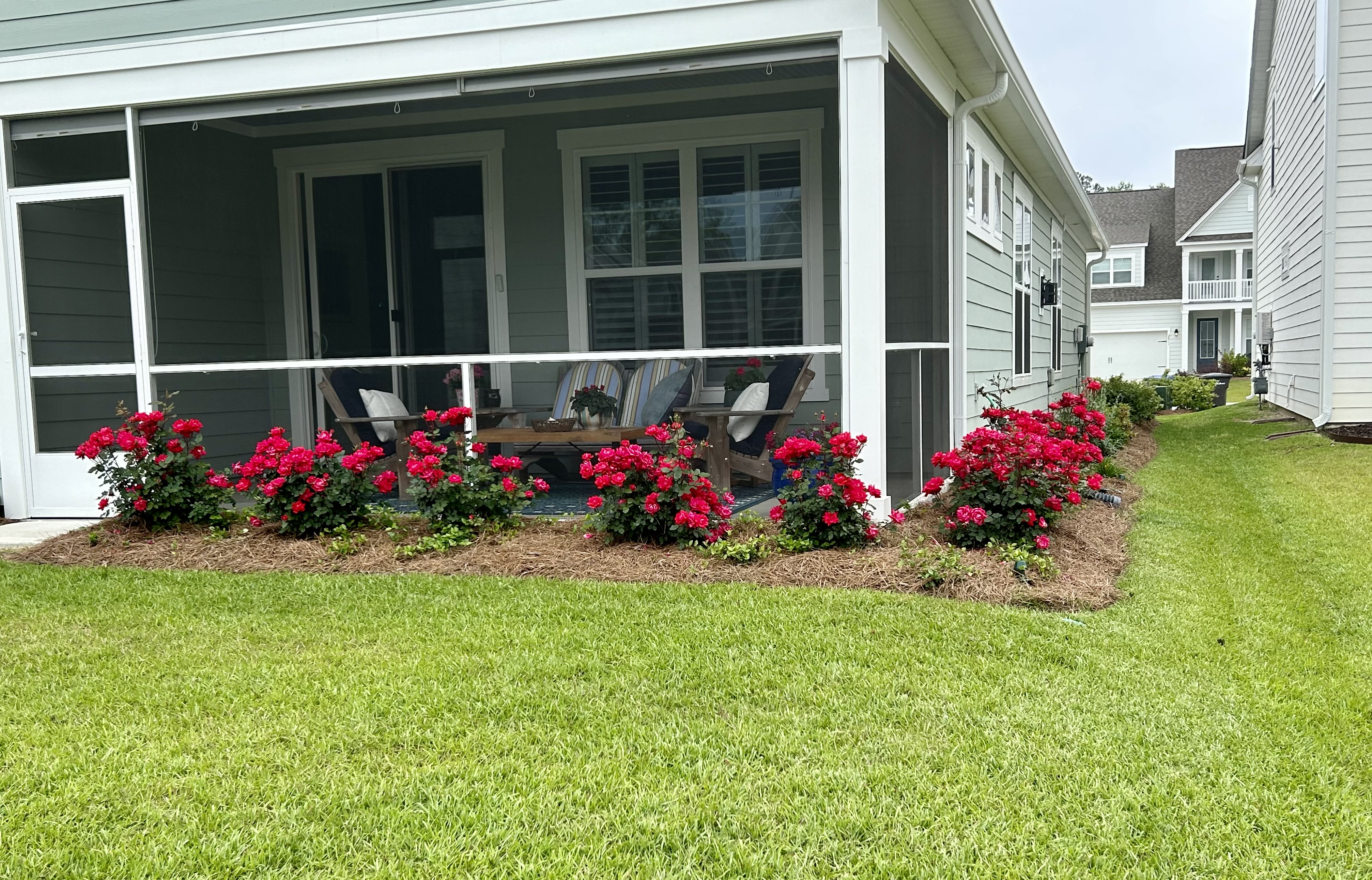I planted Shi Shi at the front corner of the house, and it will fill this space over time. (I first moved the white azalea that was here to the other side of the house, where it joined the ones that were moved from the front bed.) Shi Shi is small now, but it will…grow. Here it will get morning sun and afternoon filtered sun and shade.