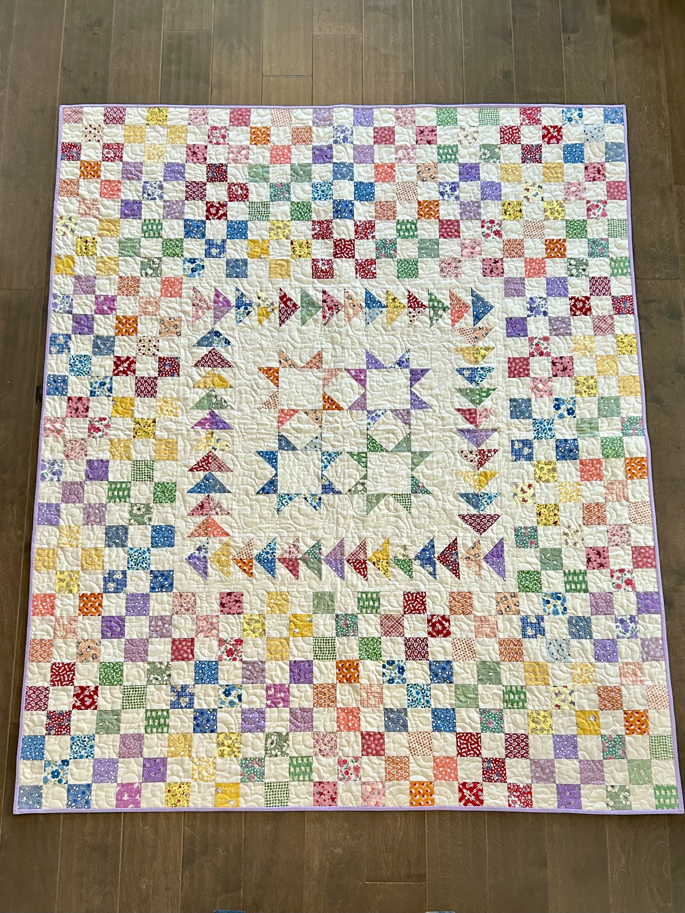 I had leftover units from the other three quilts and fabric in all the color ways on hand, so I started playing around with the units, and this quilt happened. Maybe they are the best kind? A quilt born of play and creativity?