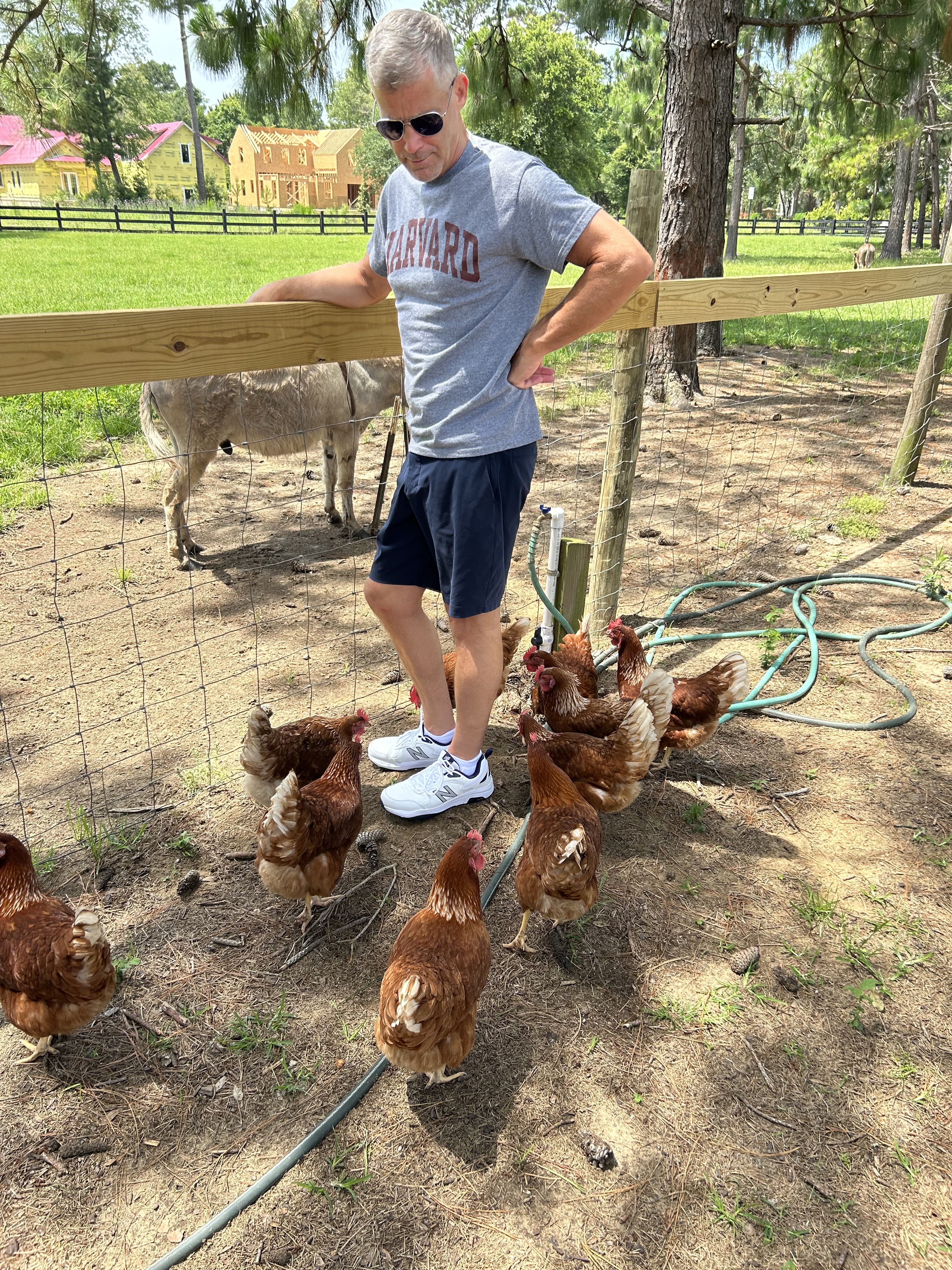 The chickens come right up to everyone’s feet, illustrating how very social chickens are.